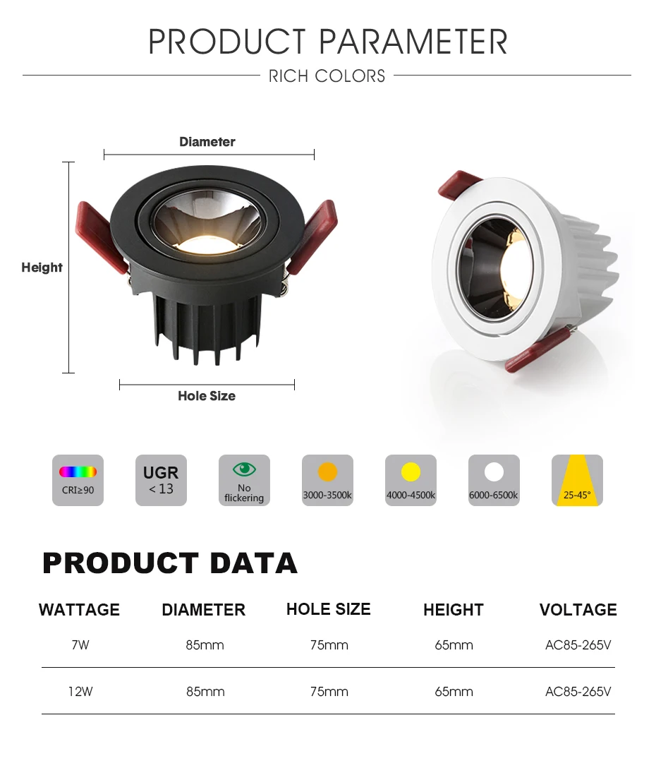 Новинка 2022, круглая Антибликовая фотолампа с регулируемым углом освещения для гостиной и спальни, 7 Вт, 12 Вт