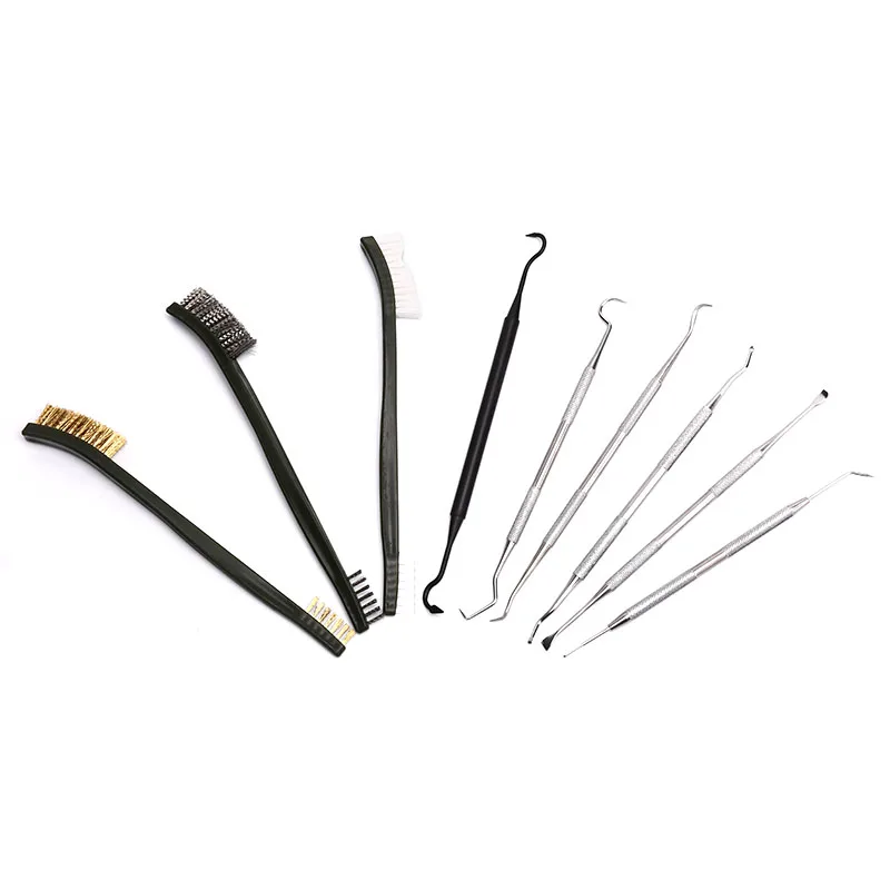 9 шт.компл. набор для чистки пистолета, 3 нейлоновые щетки из латуни и стали + 6 Нейлоновых насадок из нержавеющей стали, тактический инструмент для очистки пистолета