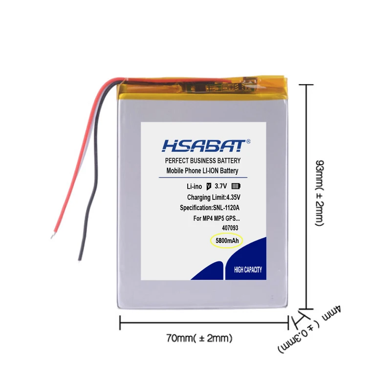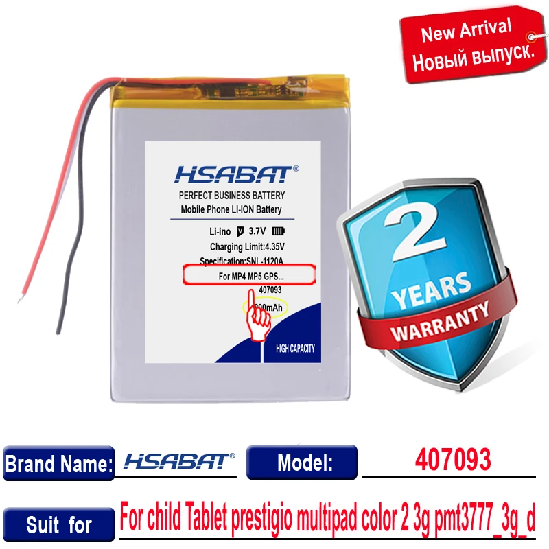HSABAT 407093 5800 мач 3 провода планшет Батарея для детей Планшет prestigio multipad, цвета на выбор, для детей 2, 3g, с функцией pmt3777_3g_d батареи
