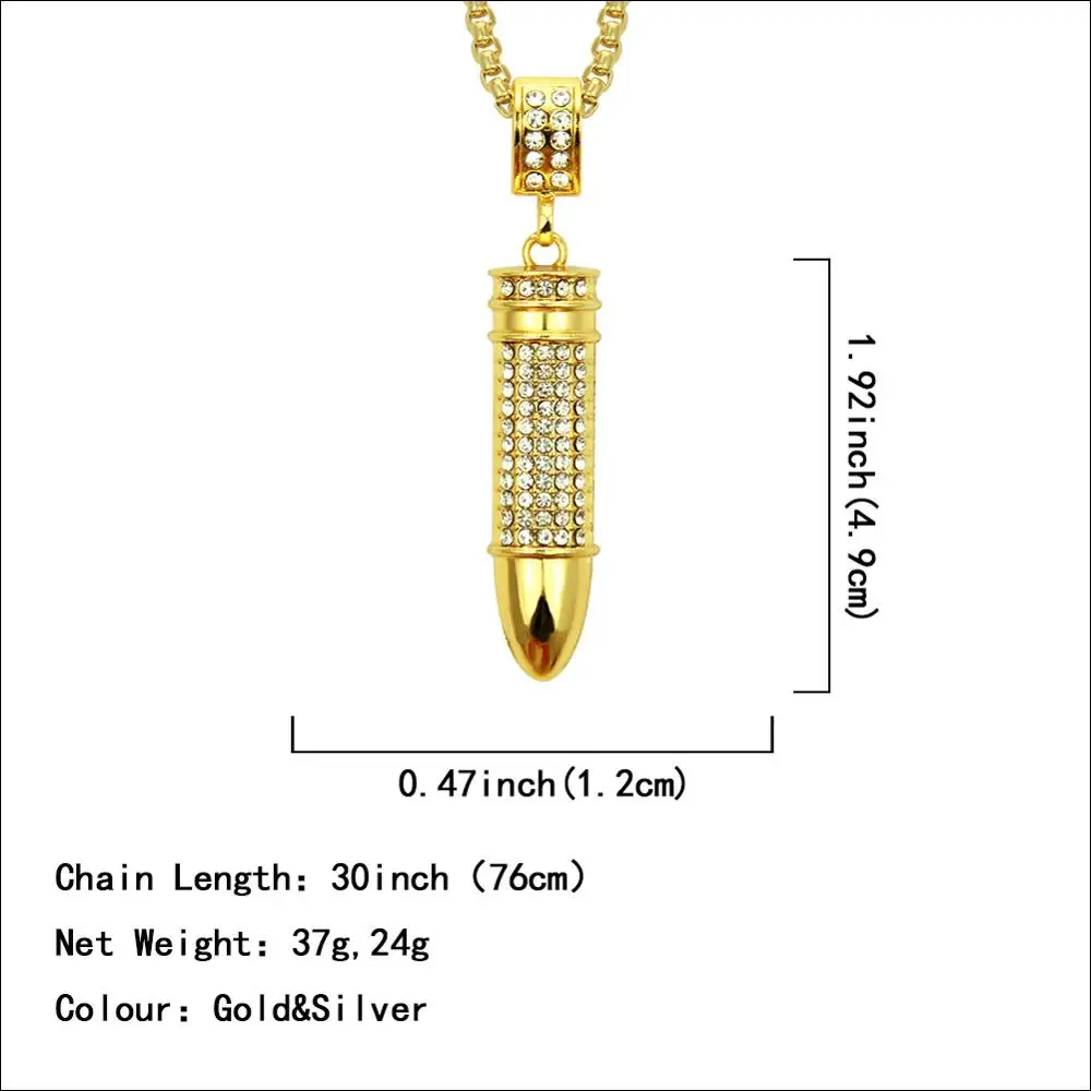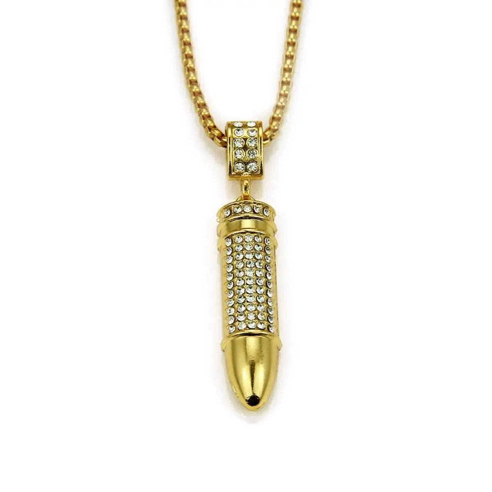 Стразы в стиле хип-хоп, украшенные блестящими позолоченными кулоны в форме пули, ожерелье для мужчин, ювелирные изделия, Прямая поставка