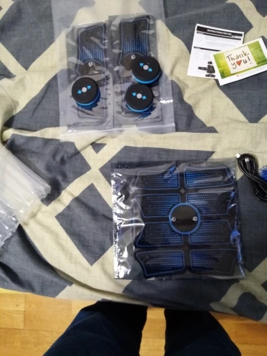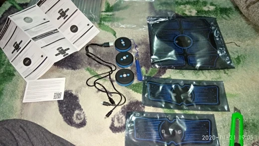 Хорошее качество , работает , идут импульсы, сокращения мышц, насколько это будет эффективно - покажет время. Не нужно выбрасывать защитную пленку, так как хранить обратную сторону с гелиевыми накладками без защитной плёнки не возможно, они ко всему липнут. Наверно надо сразу заказывать запасные гелиевые подушечки