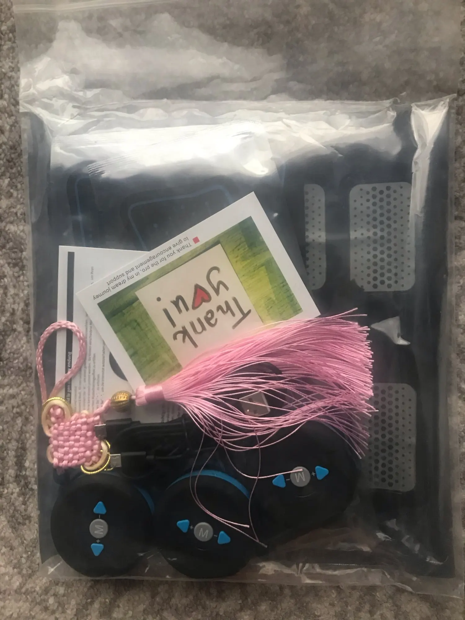 Достаточно быстро пришёл. я, почему-то думала, что упаковка будет большая, а она такая компактная)) Упакован девайс в пупырчатый целофан. Внутри подарочек в виде китайской красной подвески-кисточки. Очень мило Попробовала в действии, все работает. Первая скорость/мощность непривычна, больше пока не повышала. Надеюсь будет хорошим инструментом, чтобы вернуть прежний тонус мышц. Обязательно совмещать с аэробными и силовыми нагрузкам, диетой!