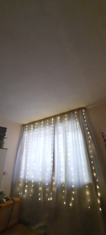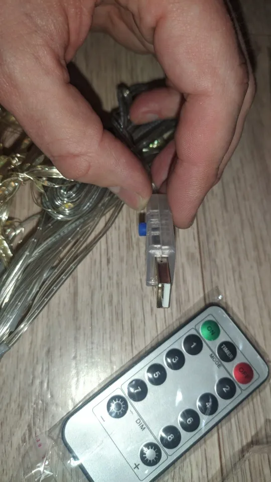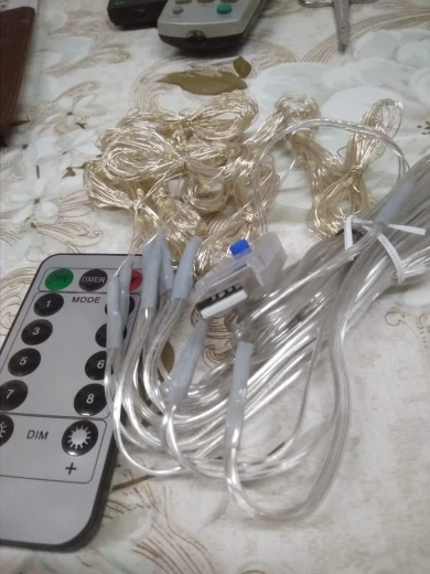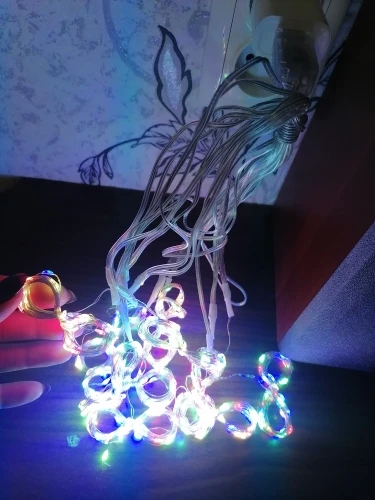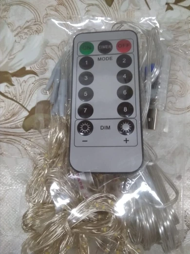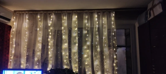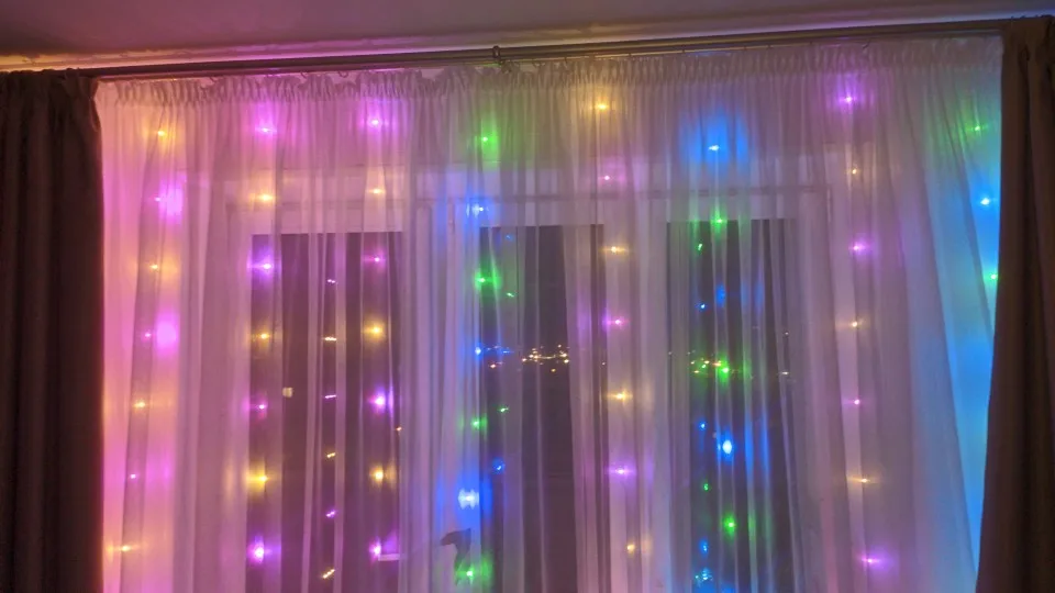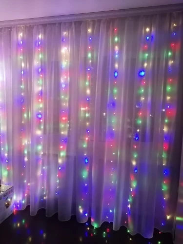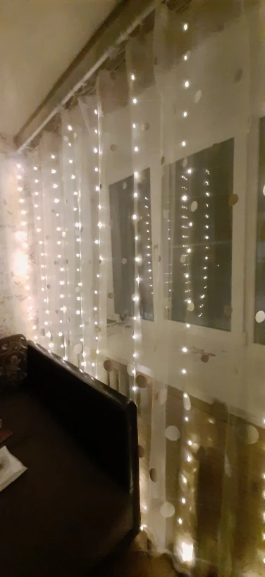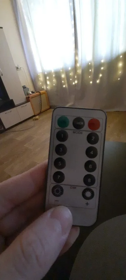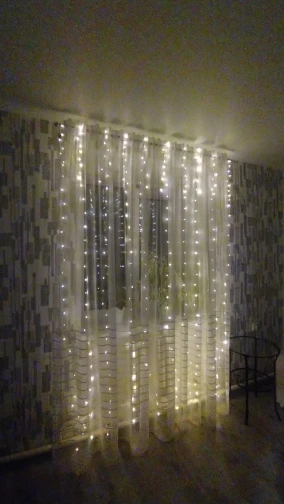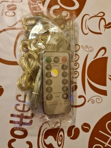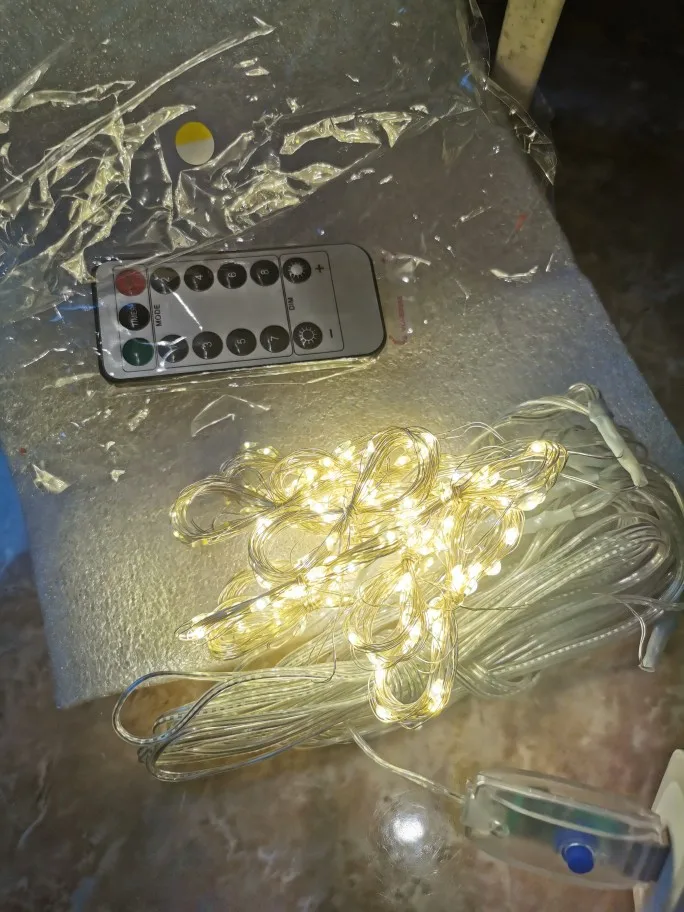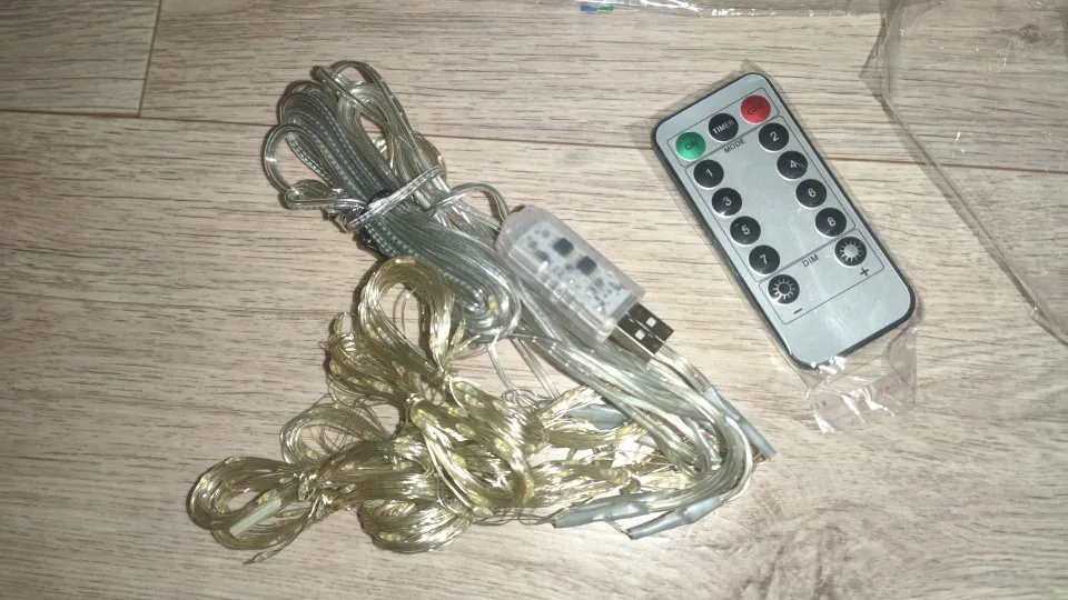 Брала 3х3м, на трех метрах всего 10 ниток герлянды, они очень тонкие, лампочки как капли впаяны в проволоку через каждые 10см. Пульт маленький с одной батарейкой CR2025(в комплект не входит) на пульте много кнопок, но по факту они не соответствуют, они все только переключают режимы, ни таймер, ни яркость у него не работают, только вкл, выкл и смена режима.