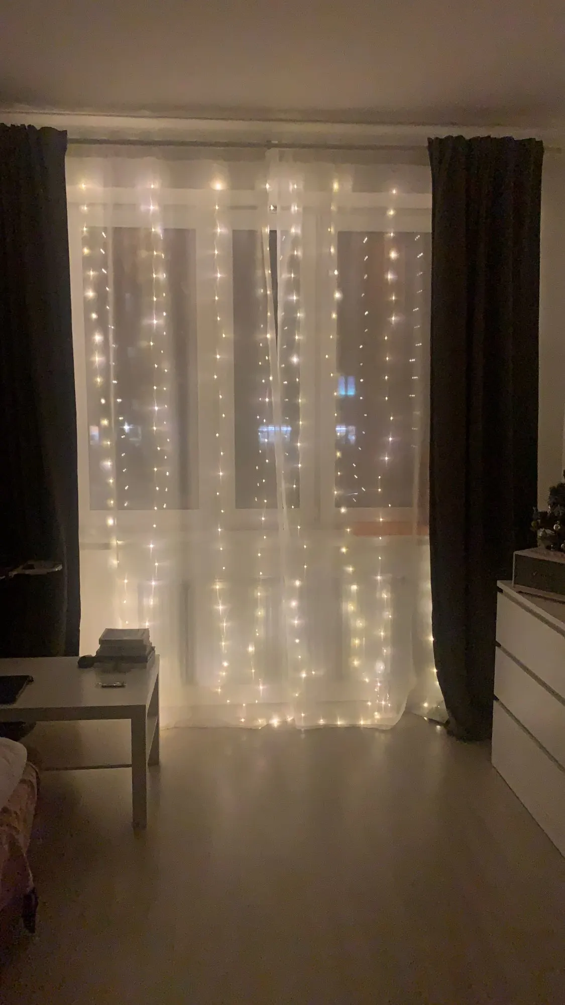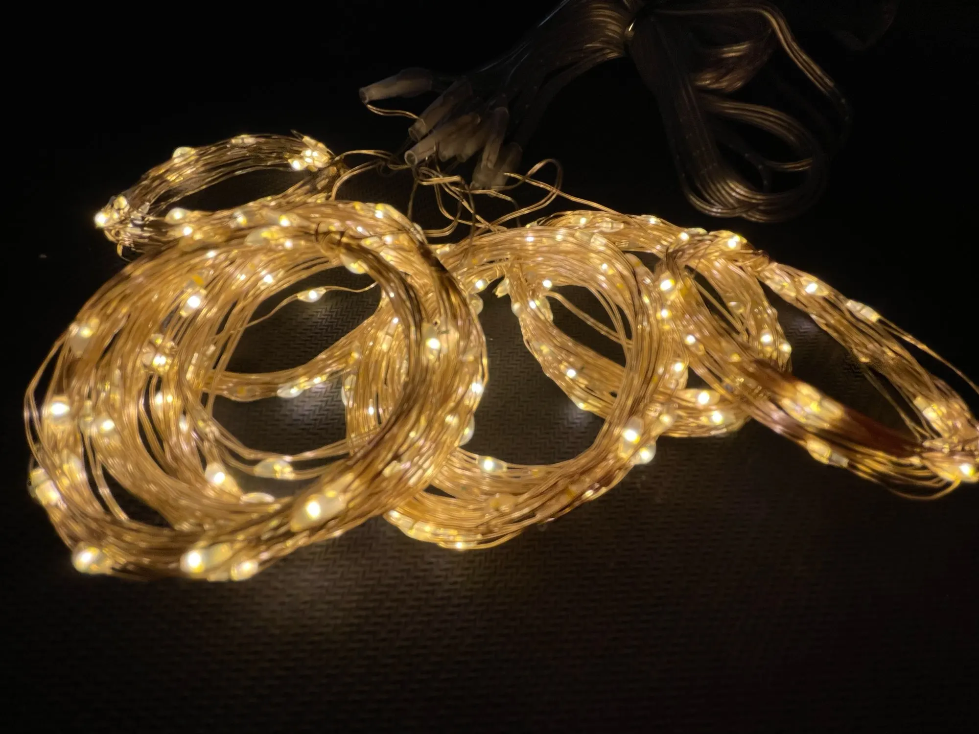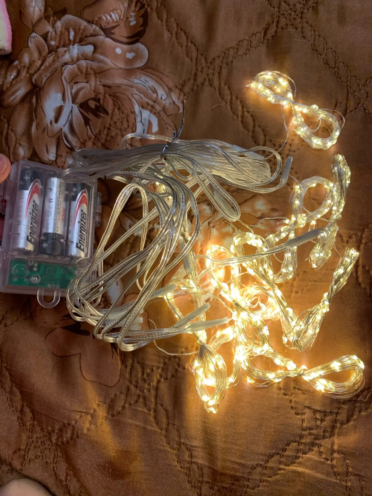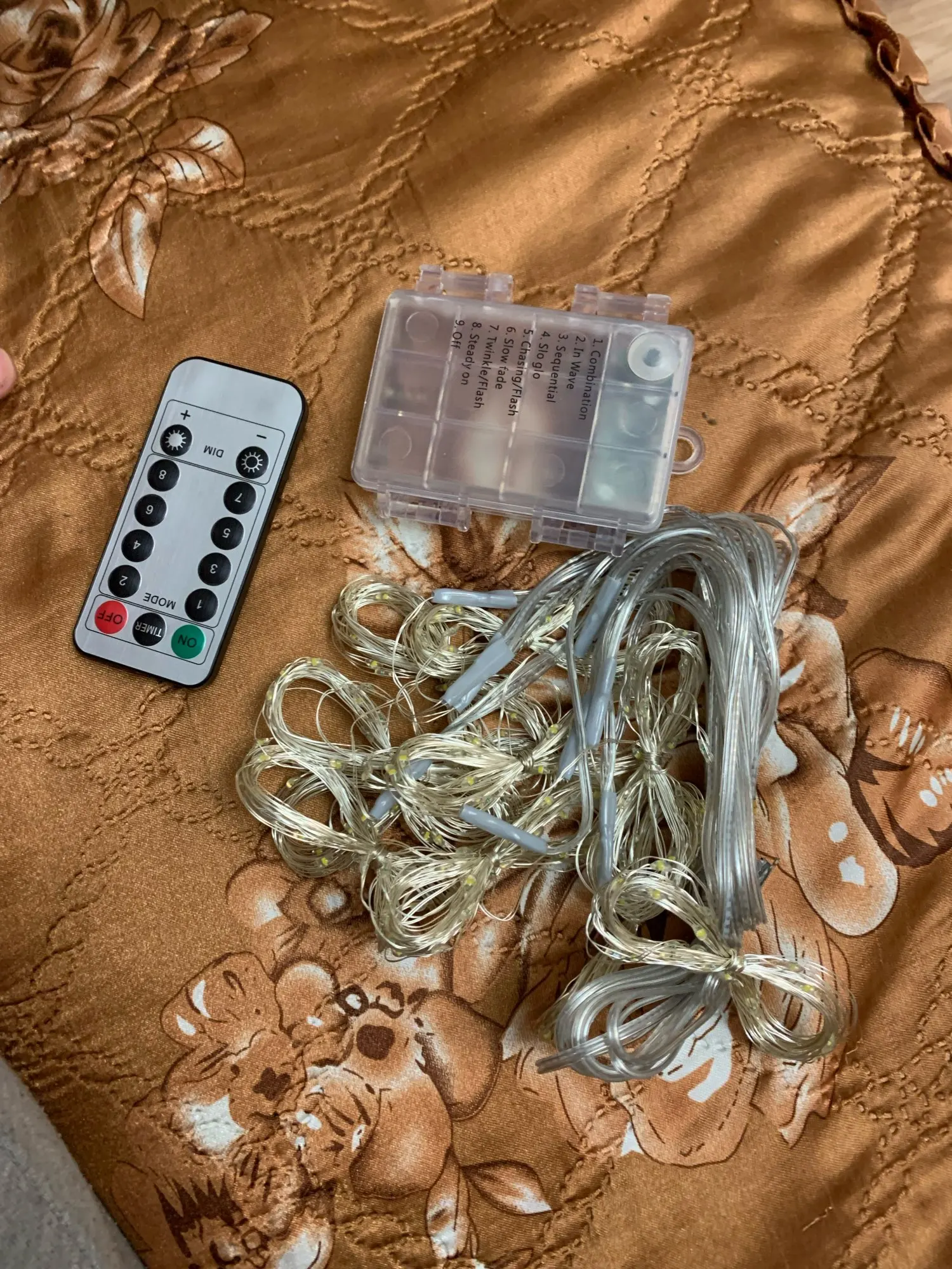 Брала 3х3м, на трех метрах всего 10 ниток герлянды, они очень тонкие, лампочки как капли впаяны в проволоку через каждые 10см. Пульт маленький с одной батарейкой CR2025(в комплект не входит) на пульте много кнопок, но по факту они не соответствуют, они все только переключают режимы, ни таймер, ни яркость у него не работают, только вкл, выкл и смена режима.