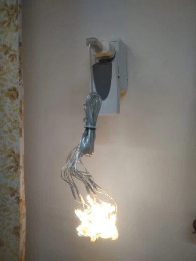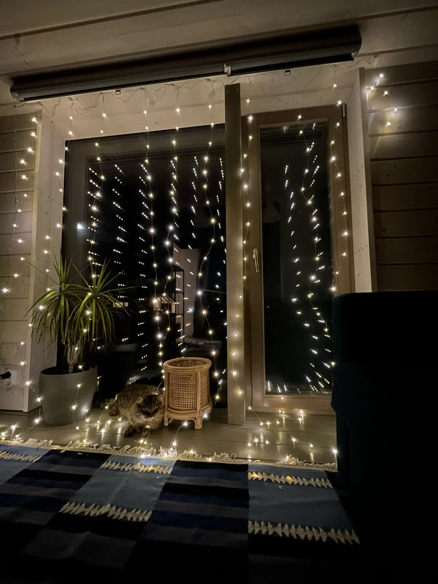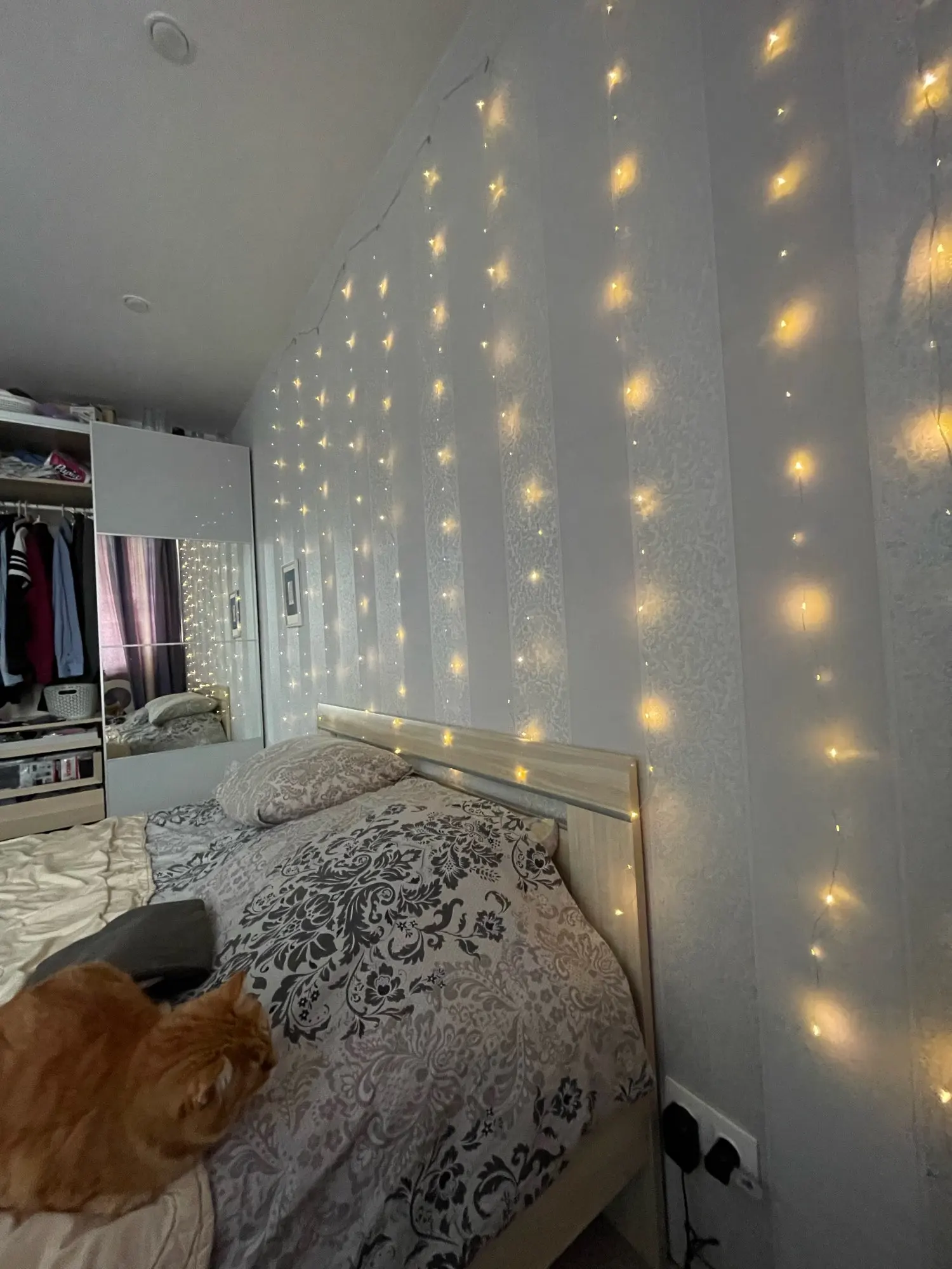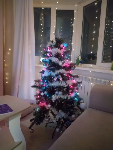 Празднику быть! Гирлянда успела до Нового Года! Отличная быстрая доставка,10 дней до Самары. Очень тонкие нити,практически невидимые в выключенном состоянии,точно леска. Заказывали тёплый белый,вполне уютный цвет. Похоже и коту уже обьект для охоты появился)).. До пола не стали опускать, потолки 2.5м,поэтому гирлянду сложили в треть. отлично смотрится! С Наступающим!...