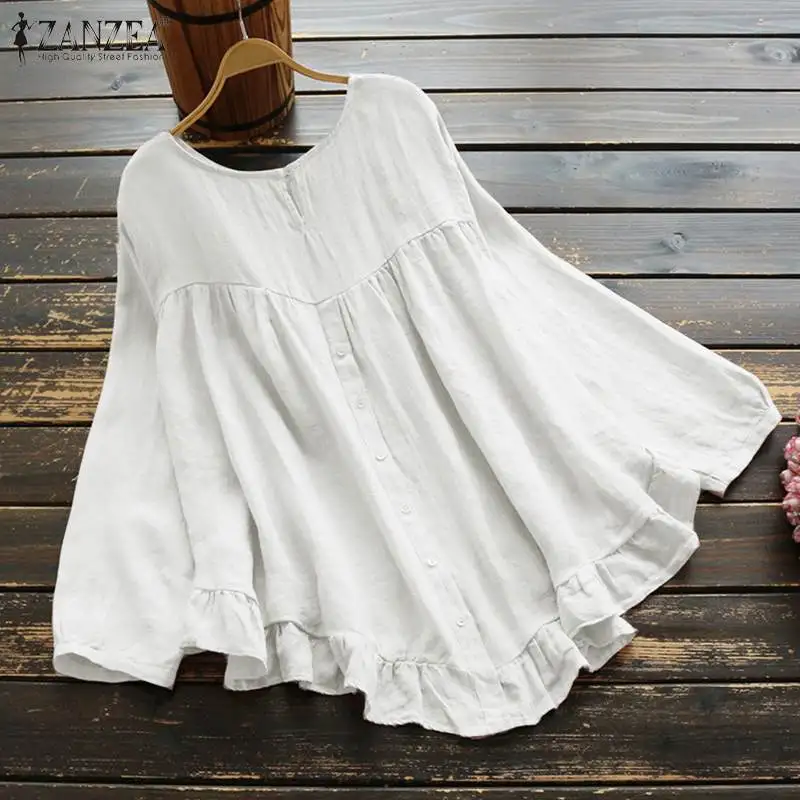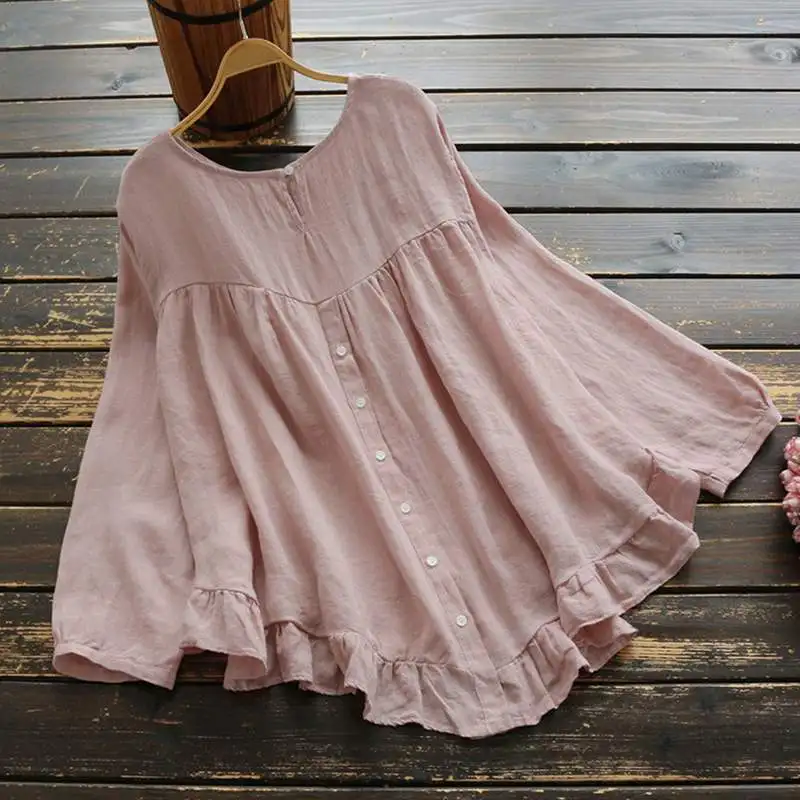 Материал: 100% хлопокТип: блузкаЦвет: белый, розовый, желтыйПосылка входит: 1 блузкаДетали продукта:-О-образный вырез-Высокий Низкий-Оборки по краю-Длинный рукав-Неровный край-Пуговицы сзади-Простой и удобный
