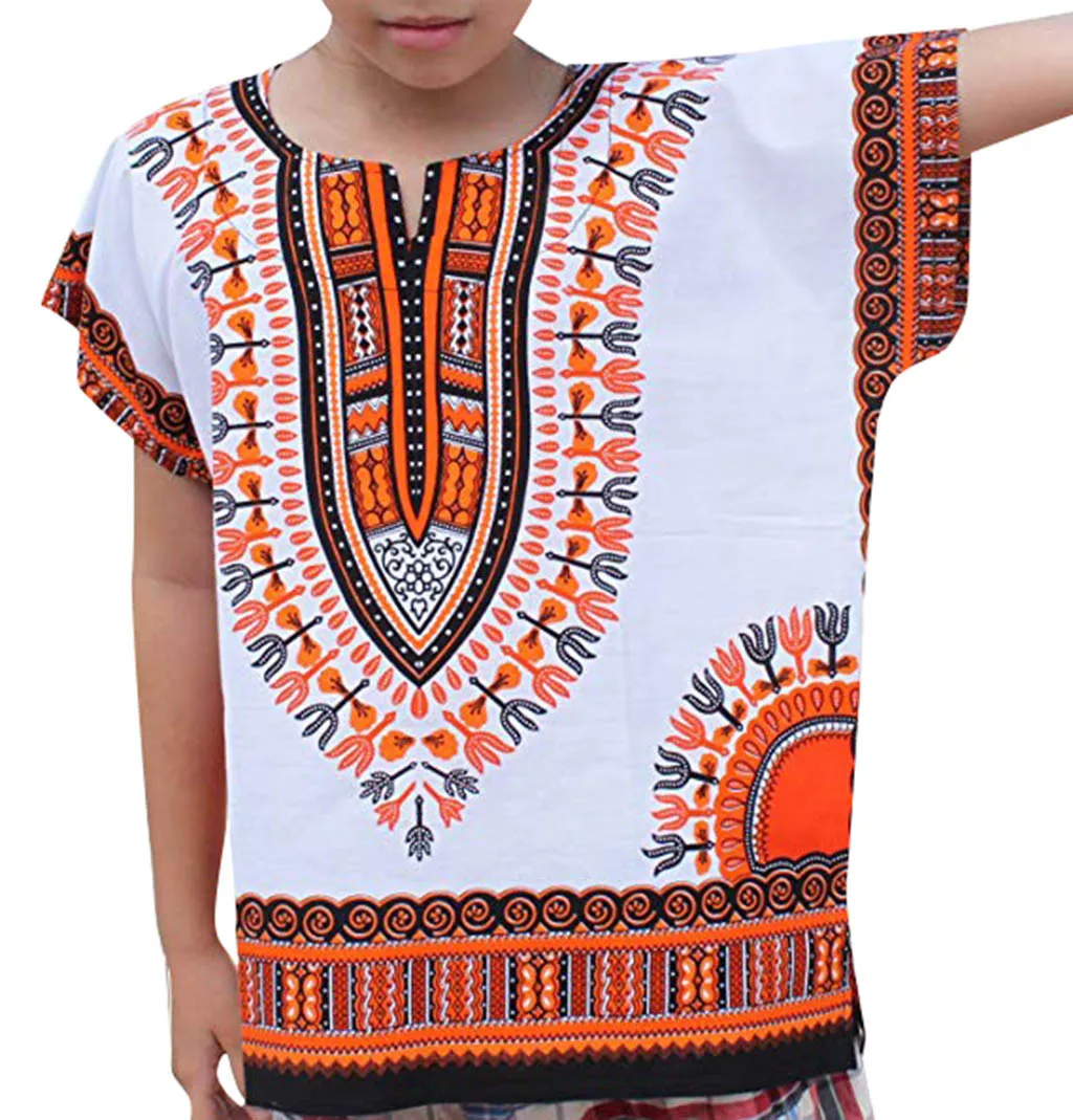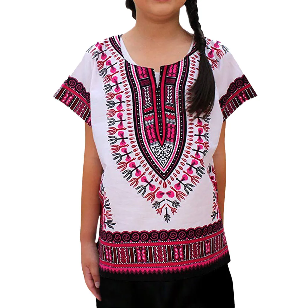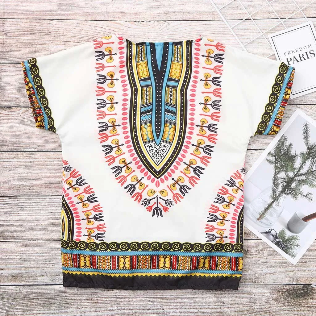 Футболка для мальчиков и девочек, яркая детская футболка Дашики в африканском стиле, традиционная африканская одежда, футболка с принтом для мальчиков