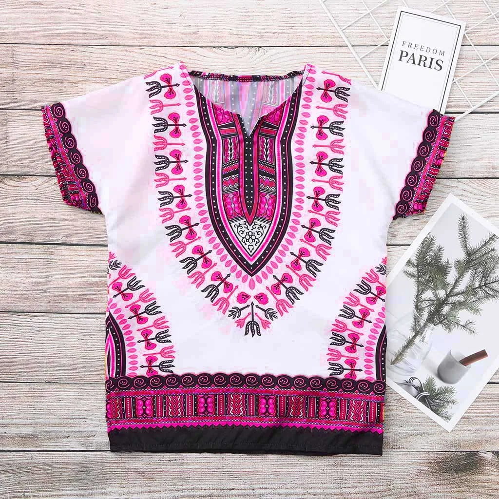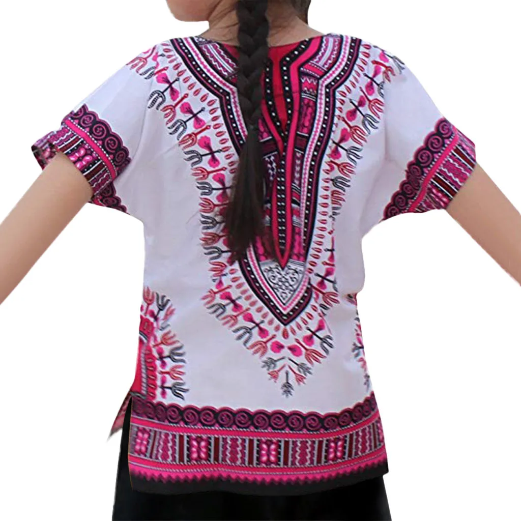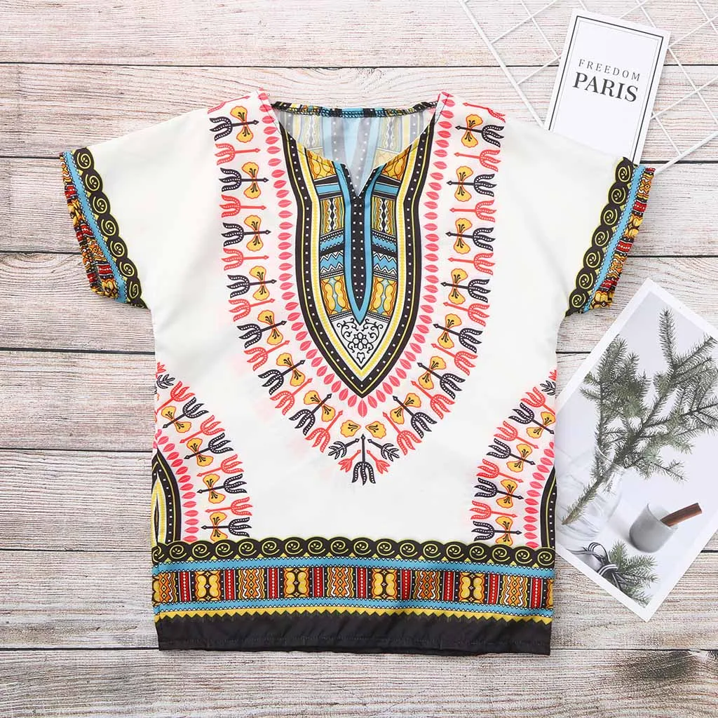 Футболка для мальчиков и девочек, яркая детская футболка Дашики в африканском стиле, традиционная африканская одежда, футболка с принтом для мальчиков