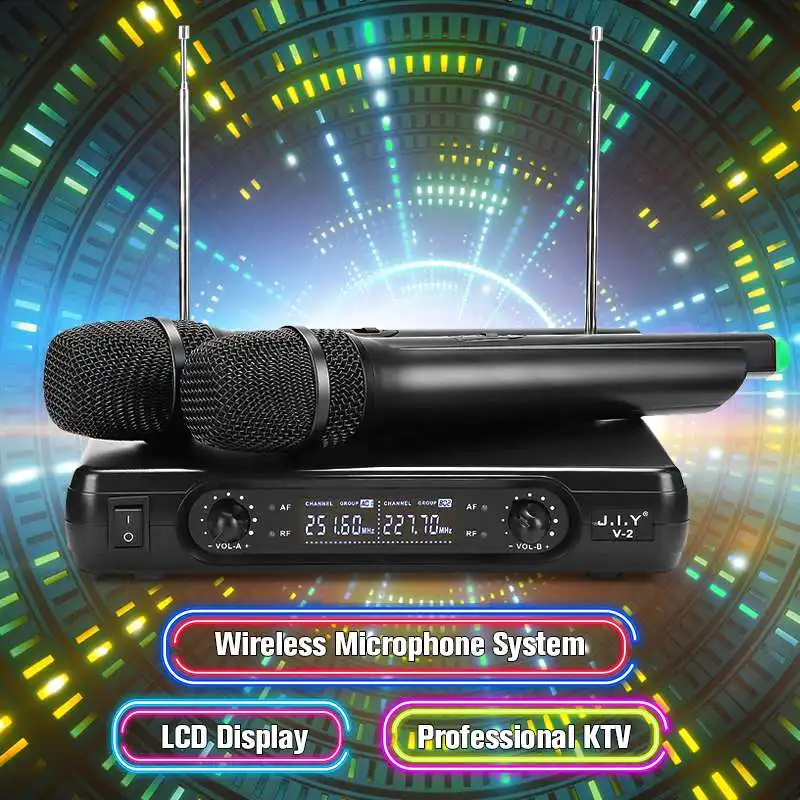 2-канальный двойной беспроводной ручной микрофон, Беспроводная микрофонная система с ЖК-дисплеем, высокое качество, стабильность, большой прием