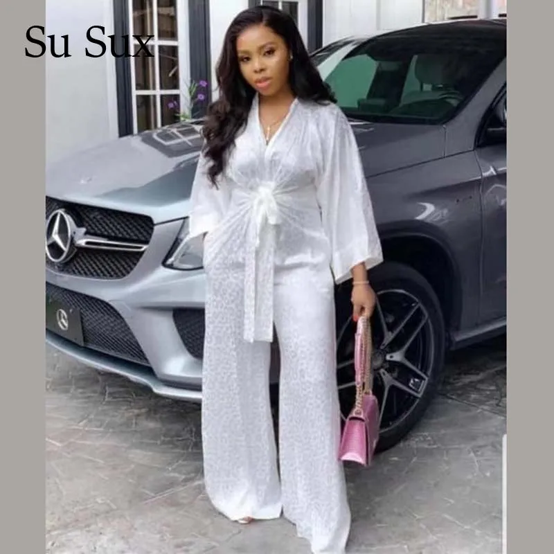 Женский комбинезон с широкими штанинами, белый повседневный комбинезон с v-образным вырезом и высокой талией, на весну