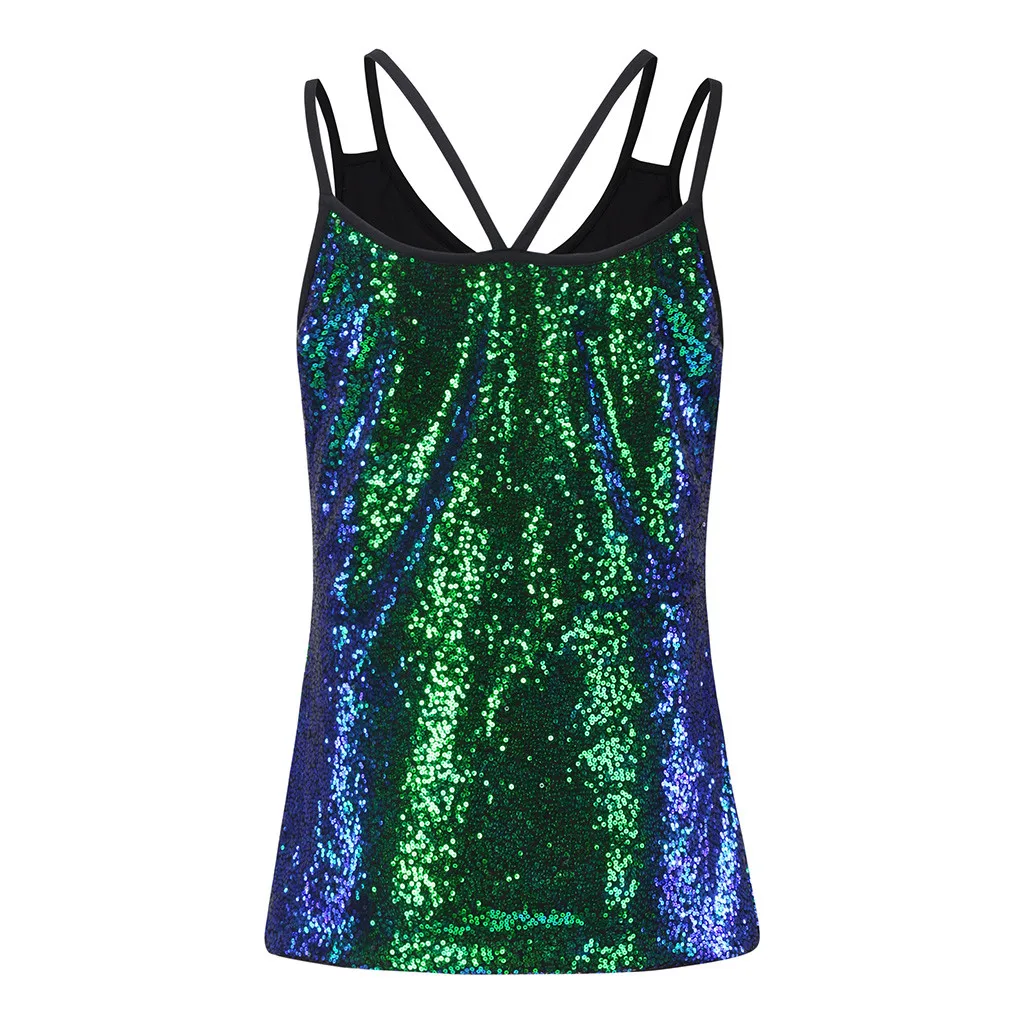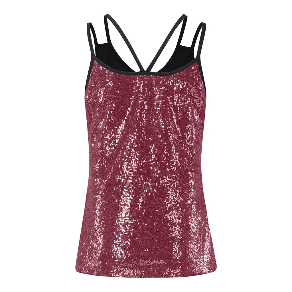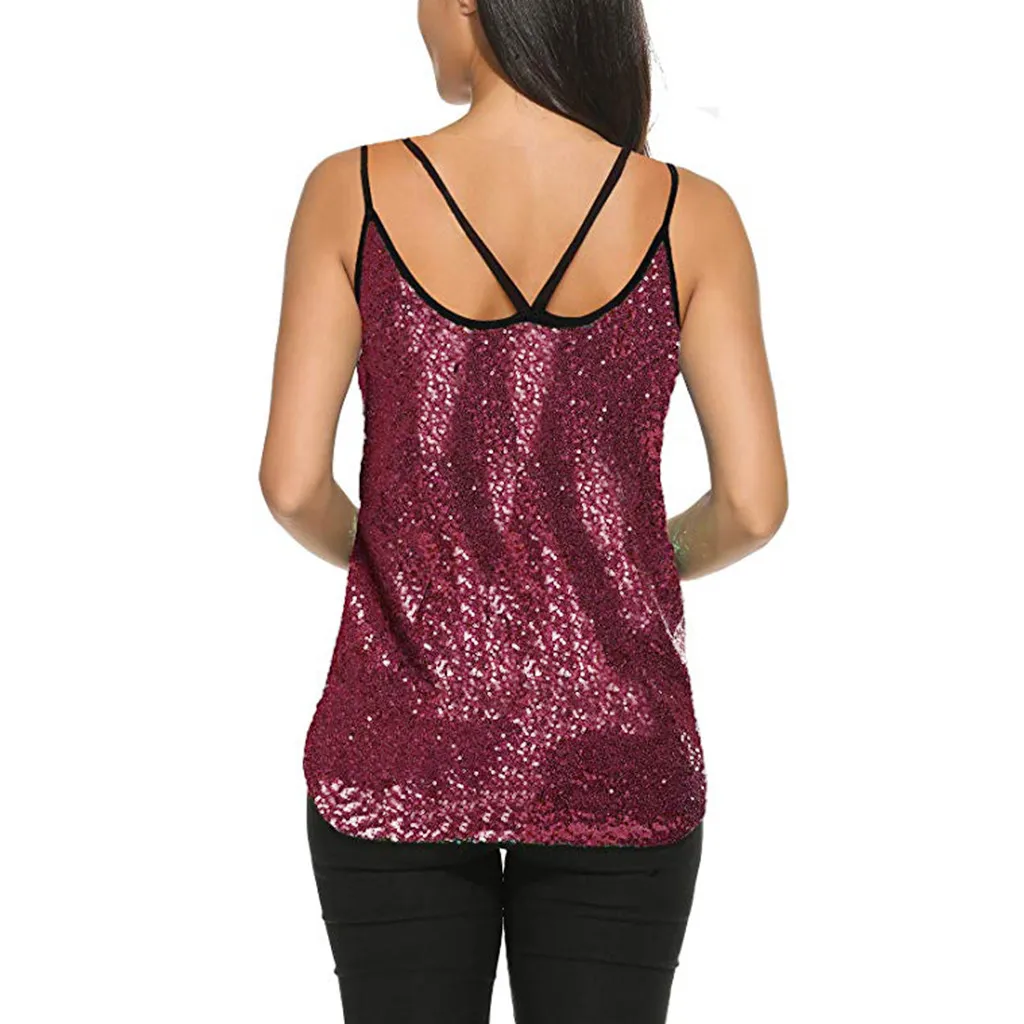 Женская футболка с блестками # Z15, летняя Однотонная футболка с V-образным вырезом, без рукавов, на тонких бретелях