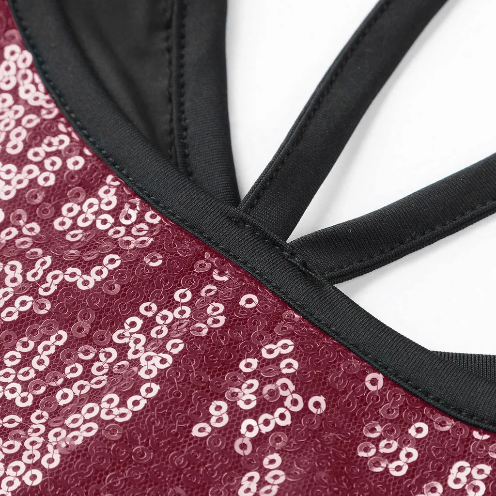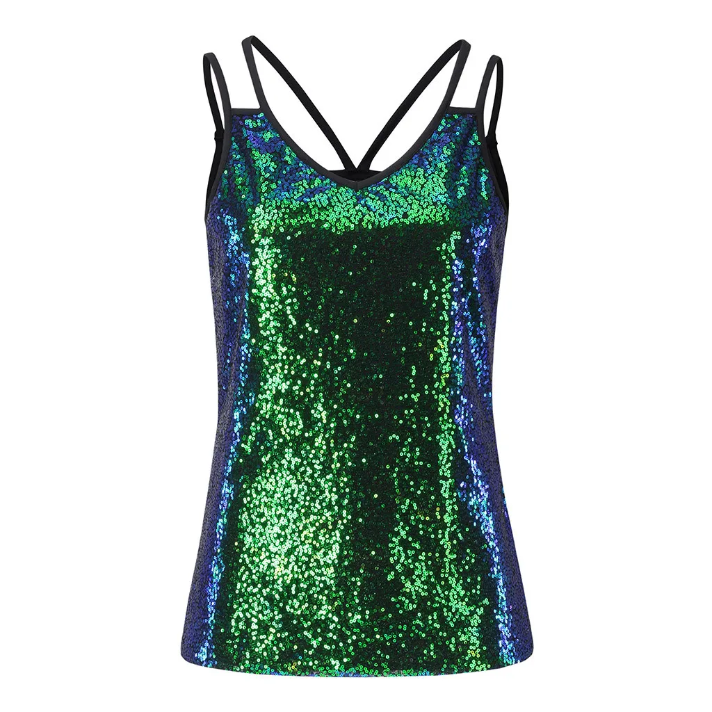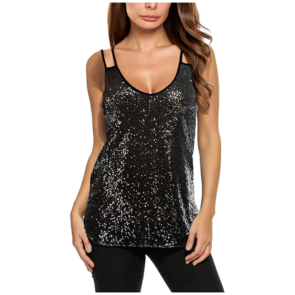 3.VШея, Без рукавов,Застежка на тонких бретеляхБлестящий топ с блестками.Очаровательный и привлекательный, простой, но модный.Подчеркивает ваши изгибы с шармом.Поверхность верха полностью расшита блестками, а подкладка из мягкой ткани.
