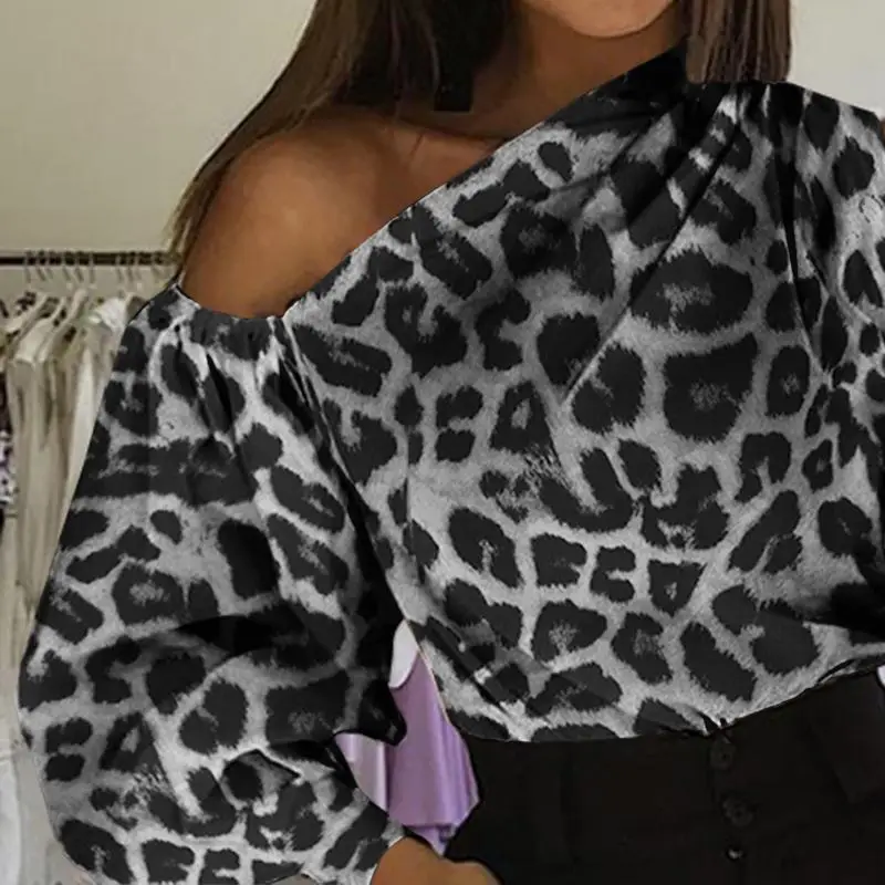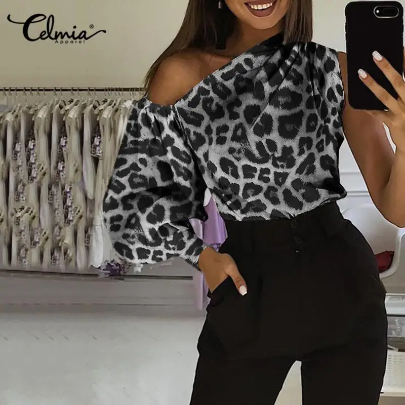 Блузка Celmia женская с открытыми плечами, пикантный топ с длинными рукавами-фонариками и леопардовым принтом, повседневная элегантная Клубная рубашка, на лето
