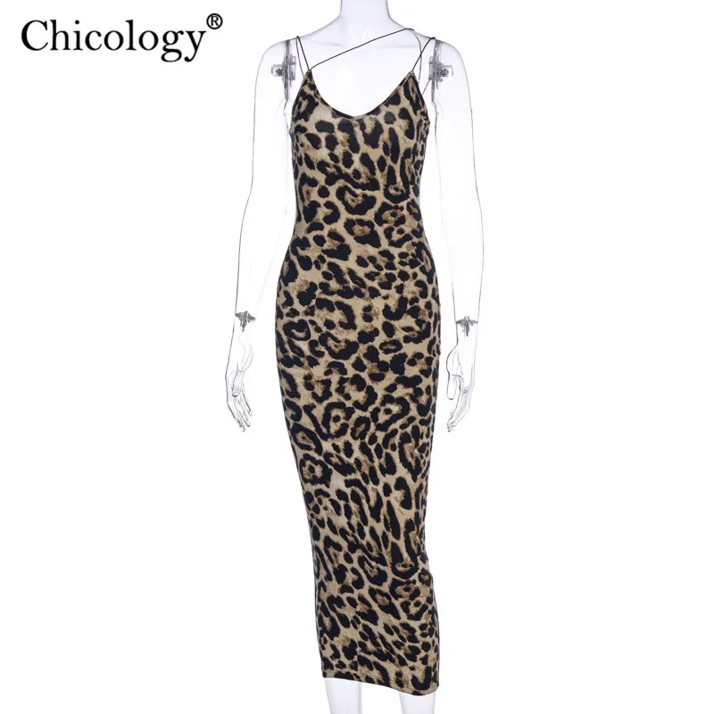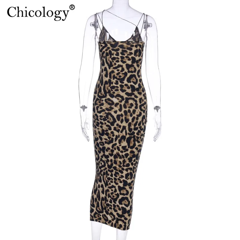 Chicology леопардовое Леопард Тонкий на бретельках лямках миди платье платья поатье нарядные элегантное облегающее обтяжку костюмы для вечеринок женское 2019 на осень-зиму сексуальные Клубные Одежда Леди повседневное