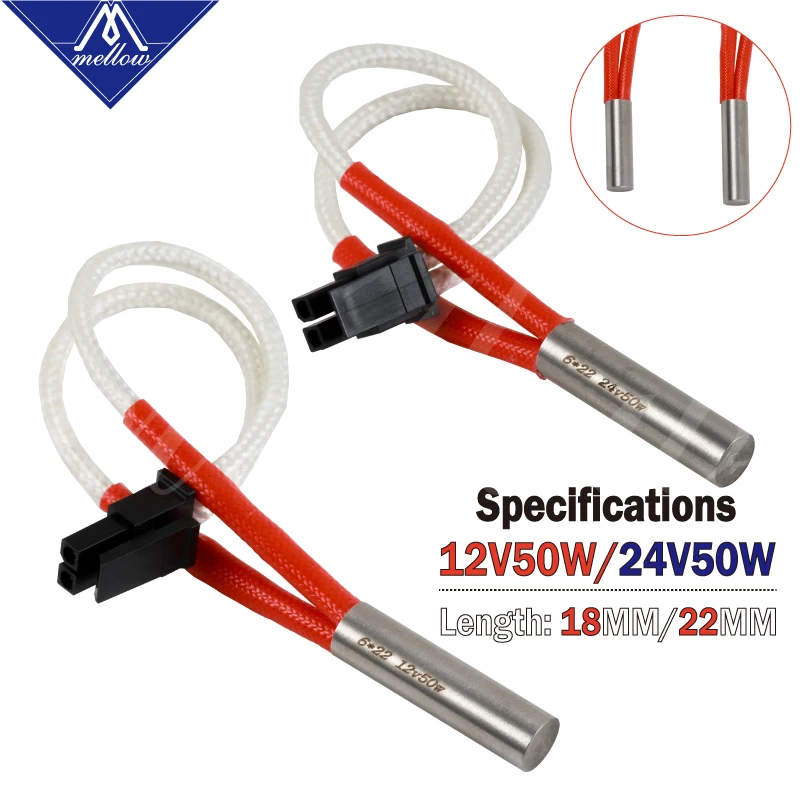 Детали для 3D-принтера Mellow, нагревательная трубка 12 В24 В 50 Вт, высокая температура 6*1822 мм, картридж нагревателя для NF-Crazy Hotend Mosmax V6