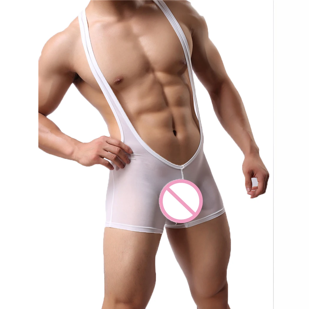 Комбинезоны для геев, ультратонкие сексуальные прозрачные комбинезоны с мешочком для пениса, шорты из ледяного шелка, мужское нижнее белье, шорты, популярный эротический комбинезон