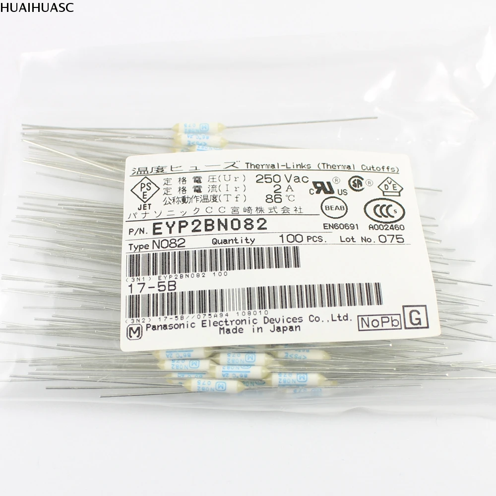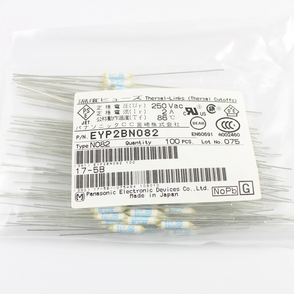 Предохранитель Microtemp, 5 шт., осевое отключение, 86 градусов, 2 А, 250 В, N082, EYP2BN082
