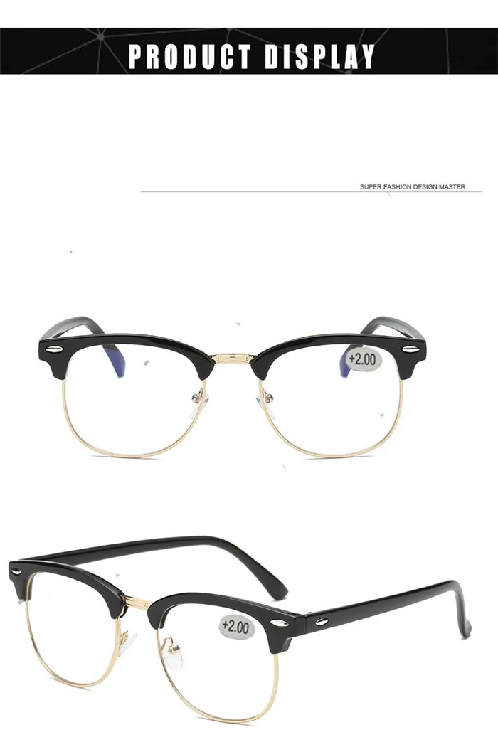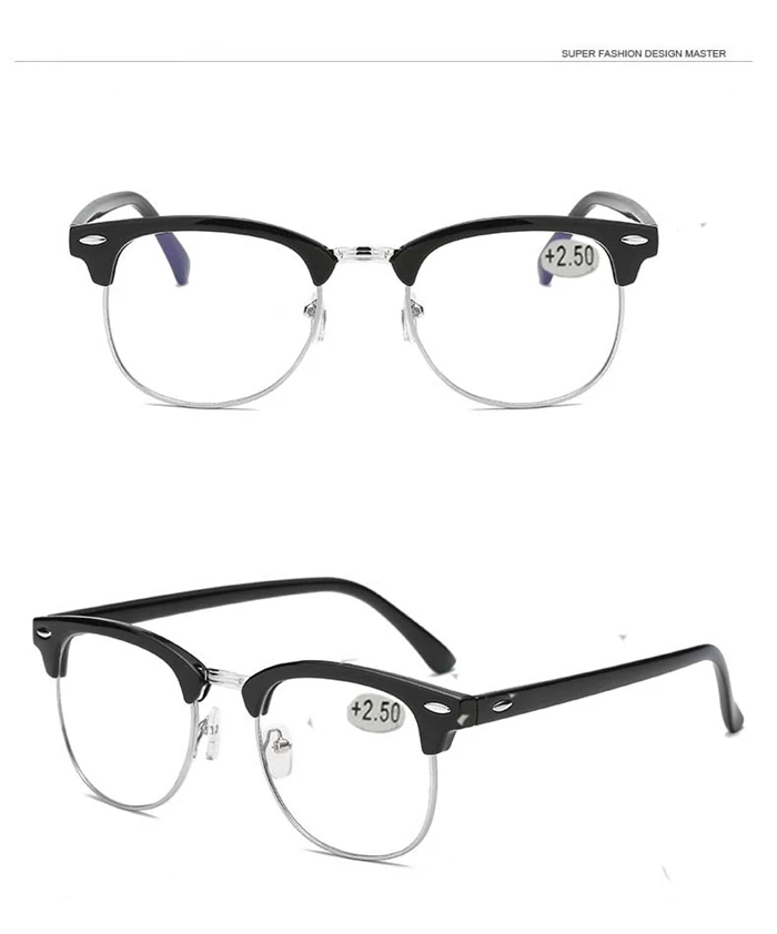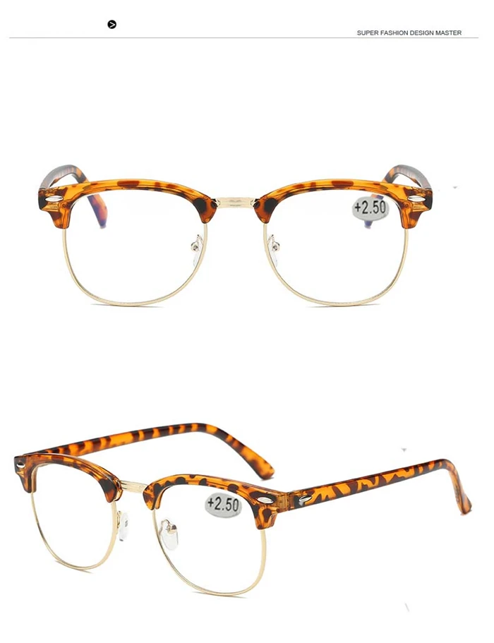 Пресбиопические очки для чтения в металлической полуоправе, мужские и женские очки для дальнозоркости с силой от + 0,5, + 0,75, + 1,0, + 1,25 до + 4,0