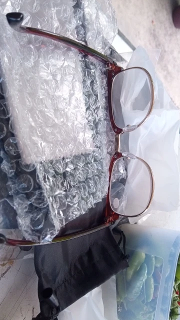 Хорошие очки (0,5). Маленькие твердые картонные пакеты. Крышка и ткань предоставляются. Защитная пластиковая пленка, чтобы избежать следов. Я закажу другую пару с более сильным признаком для точной работы. Я рекомендую это.