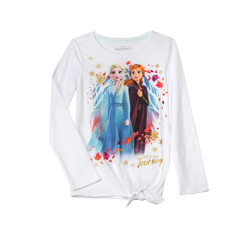 Коллекция 2021 года, Весенняя хлопковая повседневная детская футболка с длинными рукавами и рисунком Эльзы и Анны Одежда для девочек верхняя одежда для любителей От 4 до 16 лет