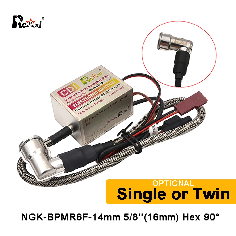 Rcexl одиночный/двойной зажигания CDI NGK-BPMR6F-14mm 5/8 ''(16 мм) шестигранный 90 градусов для газа бензиновый двигатель RC самолет