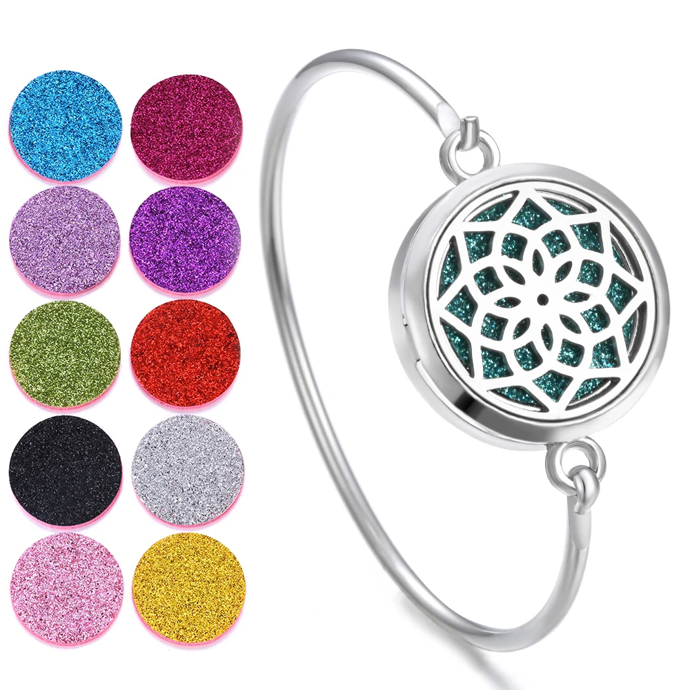 Браслет-манжета с диффузором из нержавеющей стали браслет для ароматерапии, аромат диффузор медальон