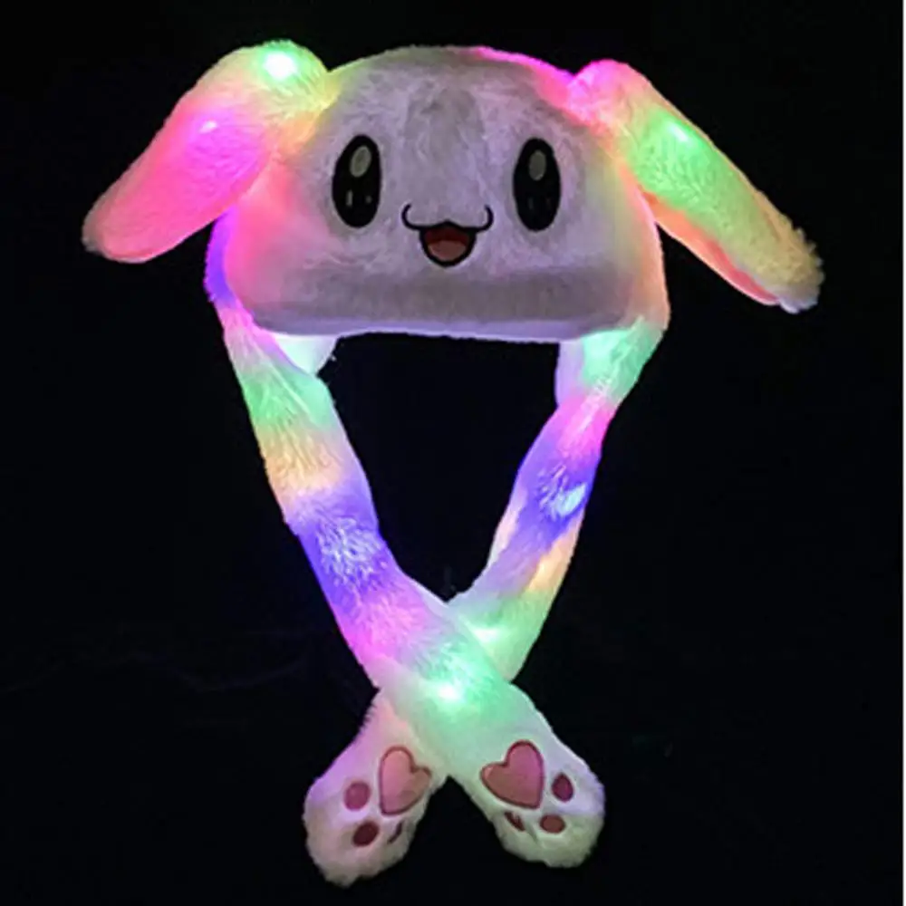 Милая плюшевая шапка с подвижными кроличьими ушками, милая светящая...