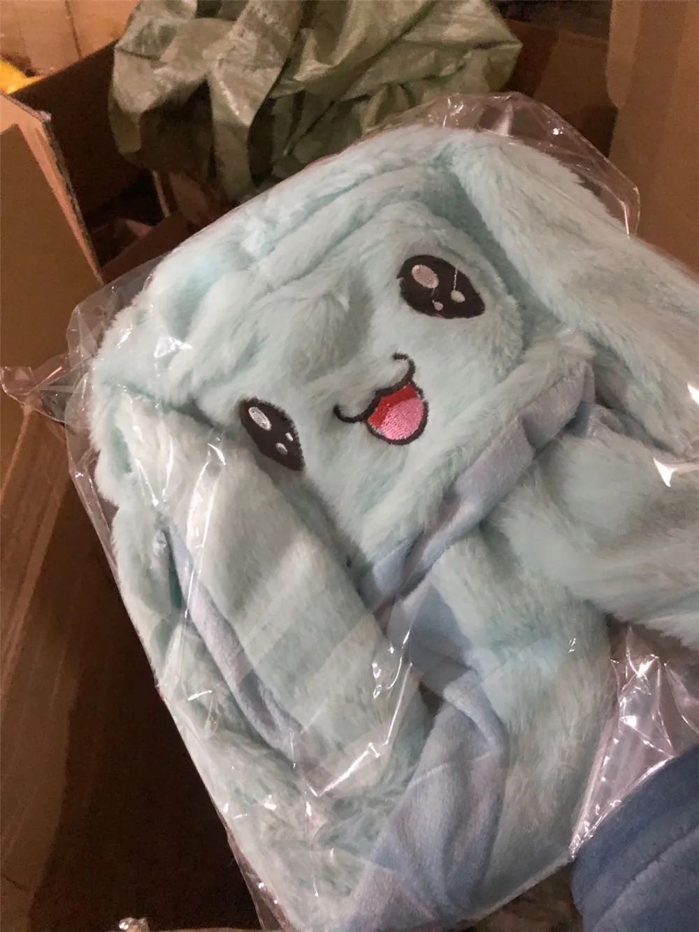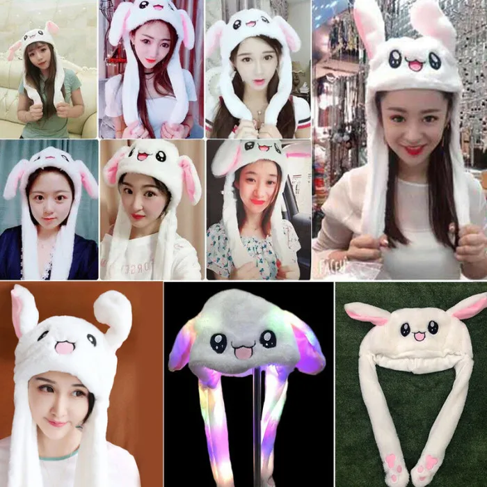 Милая светящаясясветильник ящаяся плюшевая шапка кролика, забавная ...