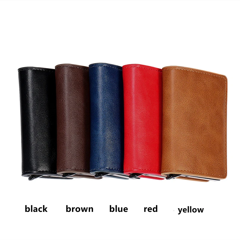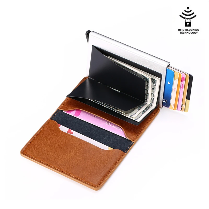 Из искусственной кожи 2020 RFID Автоматическая кошелек Кредитная Держатель для карт чехол Алюминий сплав анти-размагничивания Анти-кражи RFID кредитных карт