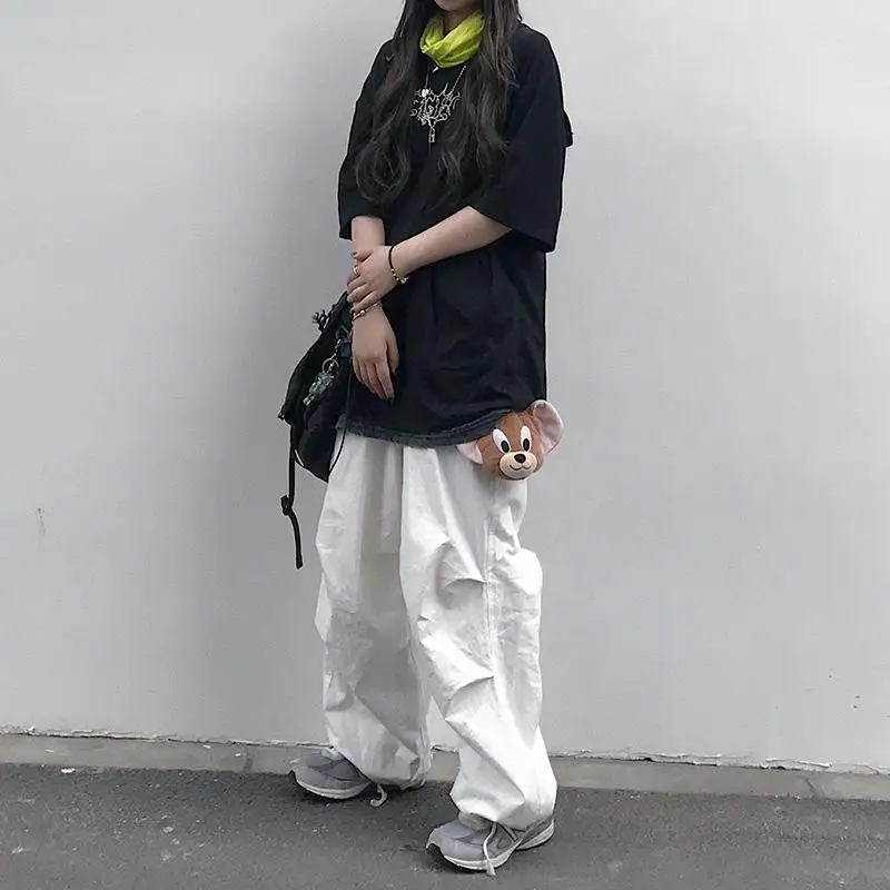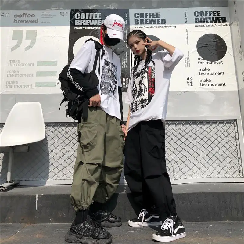 Спортивные брюки NiceMix с высокой талией, Свободные корейские Модные капри в стиле Харадзюку для женщин, в стиле унисекс