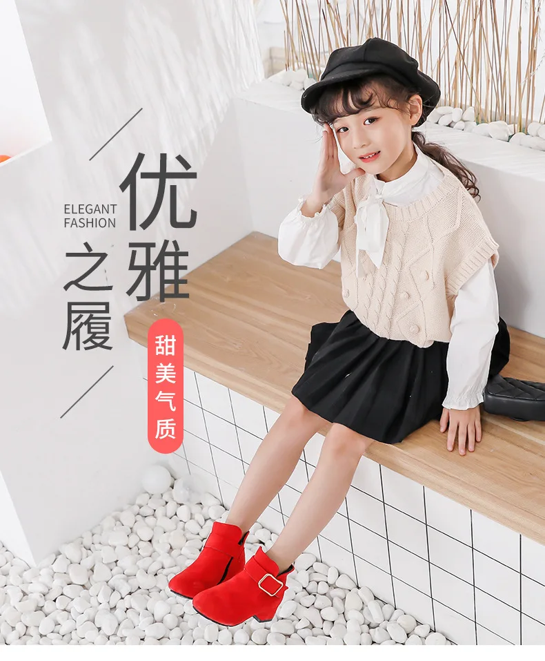 Модные замшевые ботинки принцессы, детская обувь для девочек, осенн...
