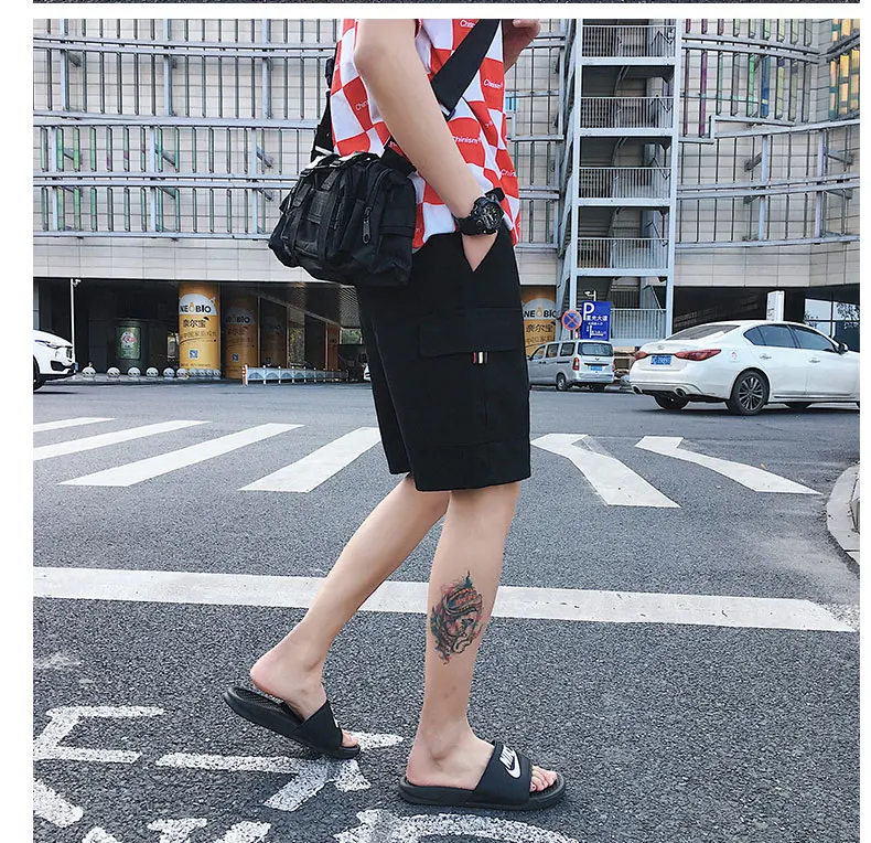 Черные мужские шорты с большими карманами товары харадзюку японские...