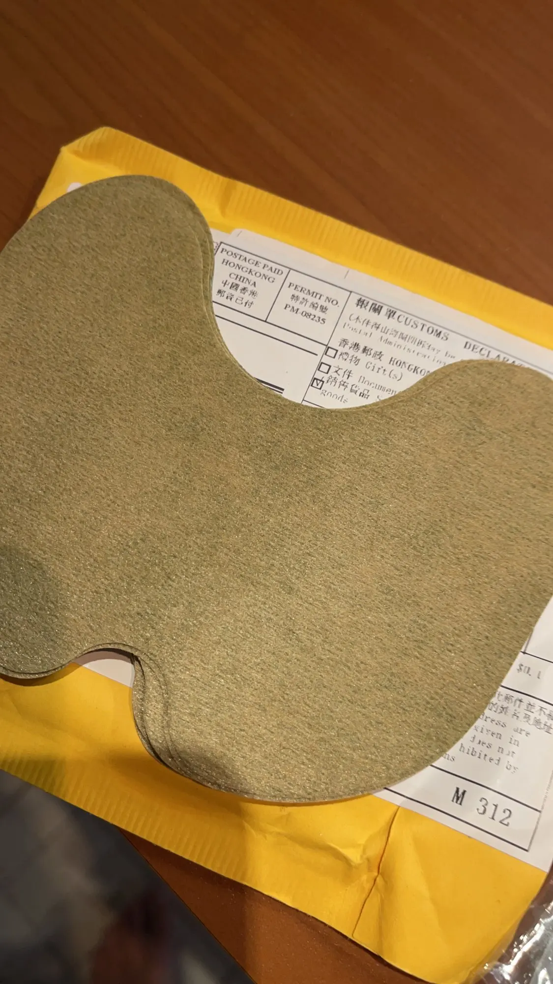 Пришло в Мск за месяц (чуть меньше). Номер не отслеживался. Получение - на почте. Очень пахучий пластырь в форме "щитовидки")) Если прикрыть шарфом - ощущается приятное мягкое тепло. Яркий запах полыни и имбиря при наклеивании на шею практически не ощутим. После применения при болях в шейном отделе отзыв дополню.