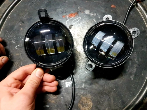 туманки сделаны с умом, у одной был дефект отливки корпуса в месте установки сапуна, пришлось вклеить трубку в отверстие, при напряжении 12в каждая потребляет 1.5А, что получается порядка 18вт на туманку, и приблизительно 180вт, родные лампы 55вт, расклеил, доработал драйвер что бы было потребление 0.5А на туманку, те 60вт, добавил термопасты было мало, нагрев понизился, теперь при свечении корпус не нагревается выше 40-45град. до этого обжигал руку. яркость практически не изменилась