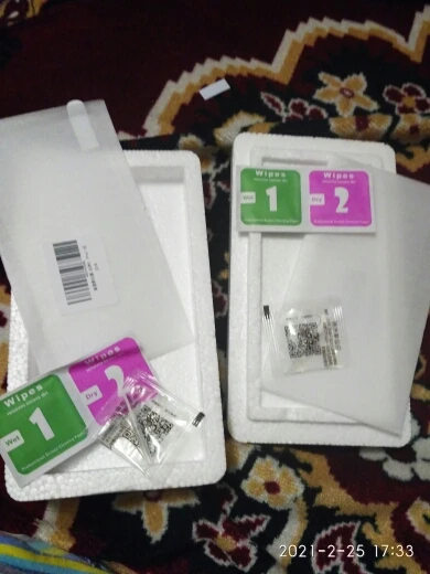 стёкла пришли в срок. в комплекте идут по две салфетки и масло для каждого стекла. советую