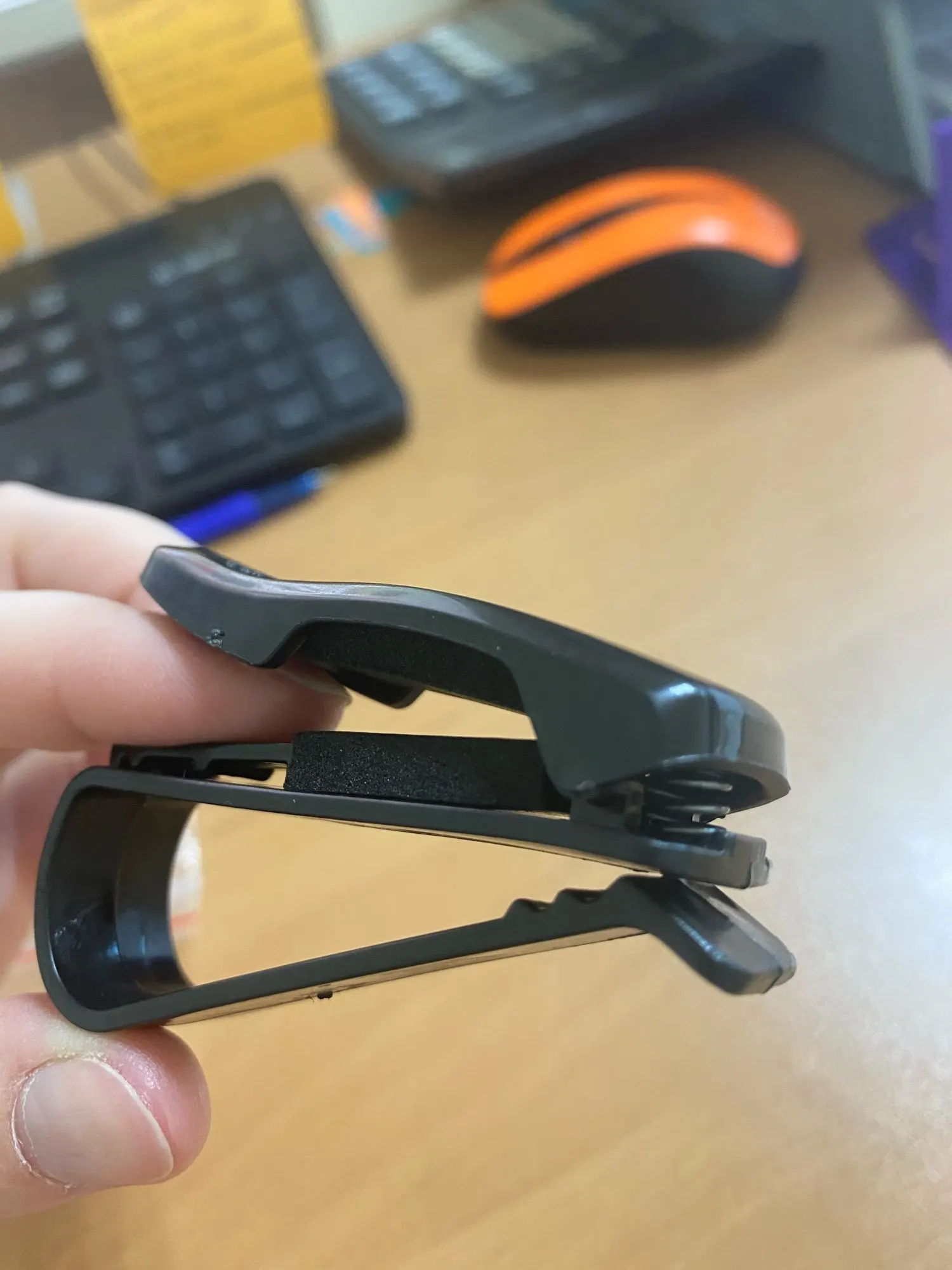 Надежно крепится к солнцезащитному козырьку, не препятствует обзору водителя