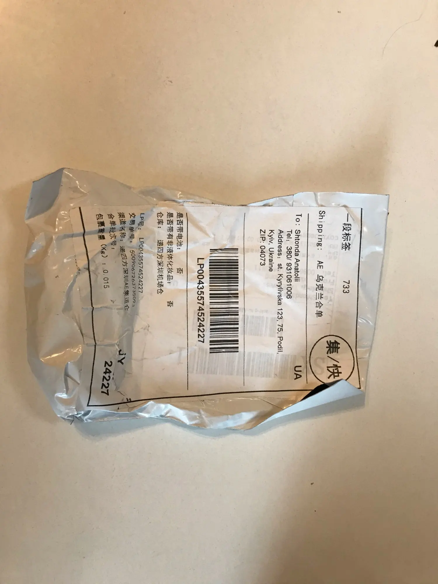 Страна: UA Доставка: Cainiao Super Economy 13.06.2021