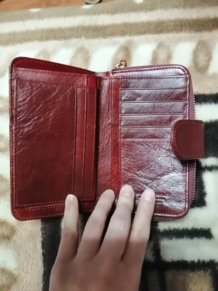 Присоединяюсь к положительным отзывам. Кошелек очень вместительный, удобный, оптимального размера. Для меня удобно, что купюры отдельно, и отделение для мелочи в удобном доступе. Натуральная кожа, ровные швы, никаких торчащих ниток. Отличное качество! Посылка дошла в Московскую область быстрее обещанного срока. Успела купить до поднятия доллара за 1700, чему очень рада) Продавцу огромное спасибо за качество и быструю отправку. Больших продаж и только довольных клиентов.