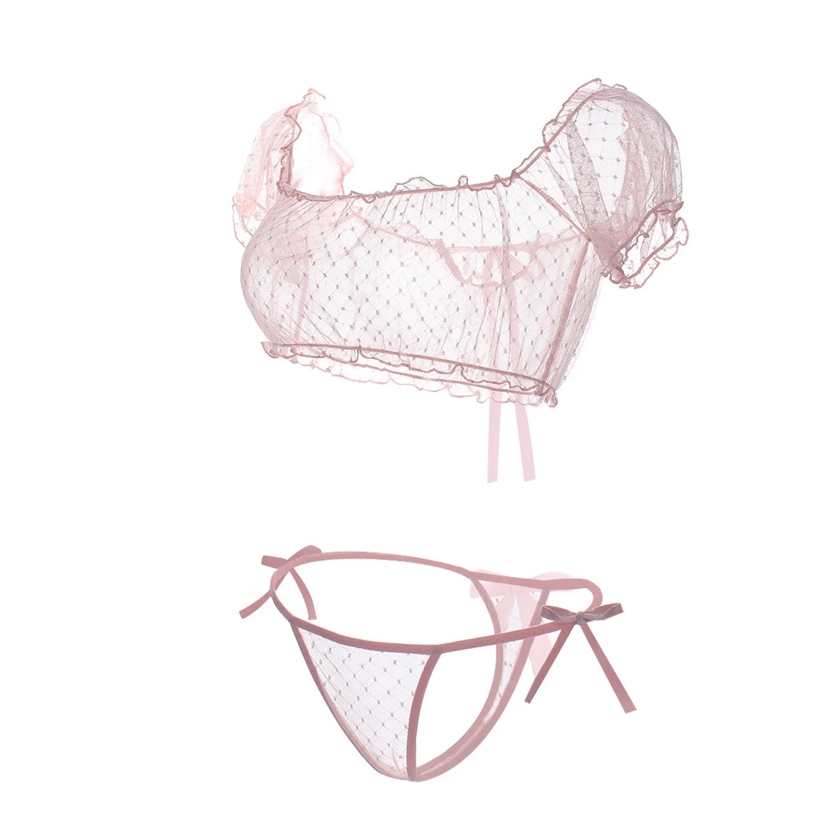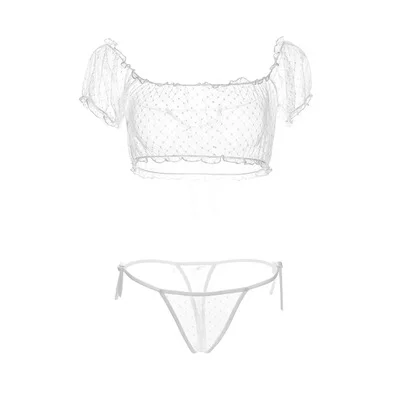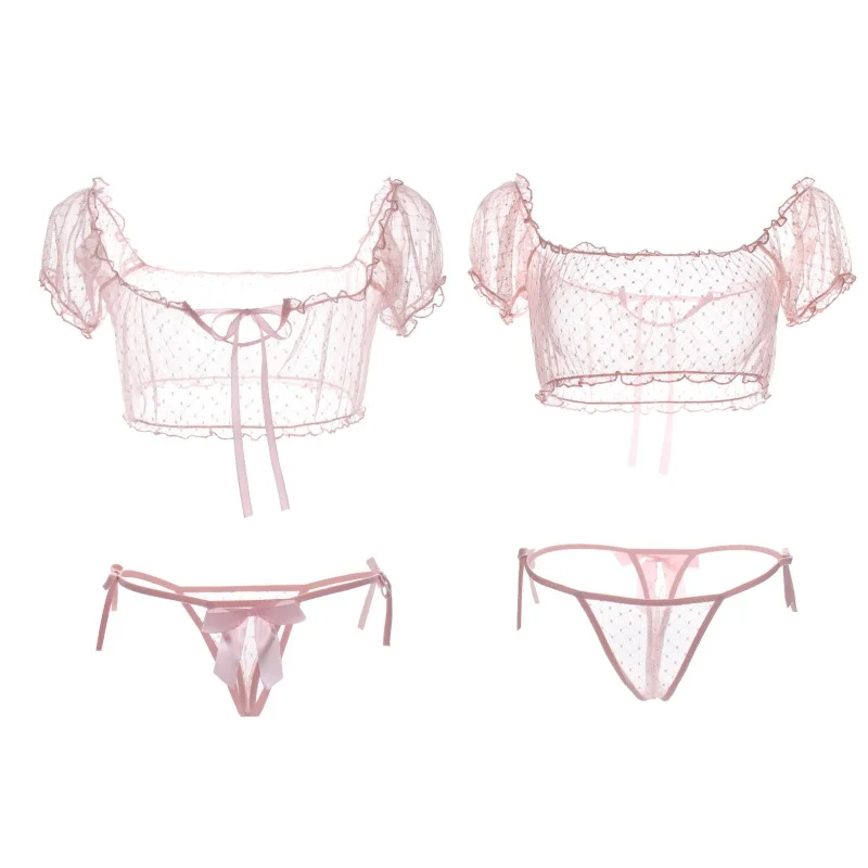 Комплект нижнего белья из шелка, с кружевами и коротким рукавом