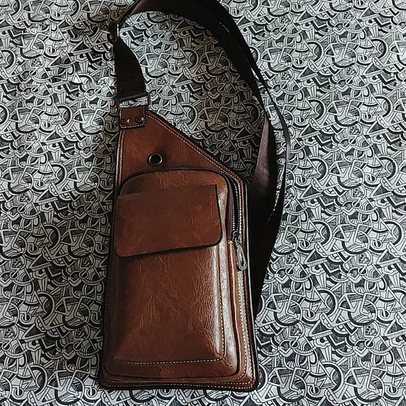 Ручная работа, кожаная мужская модная нагрудная сумка, сшитый узор,...