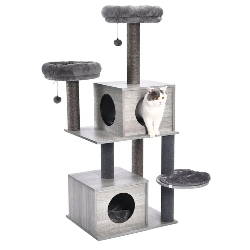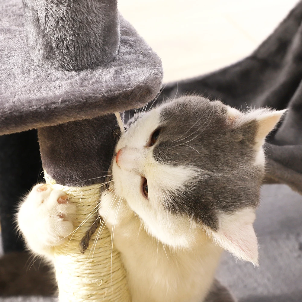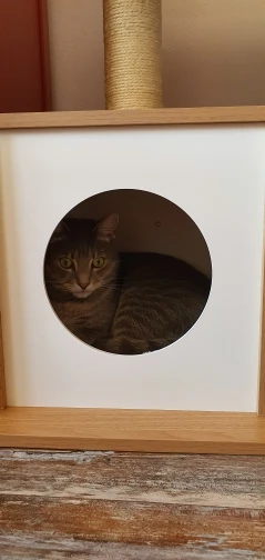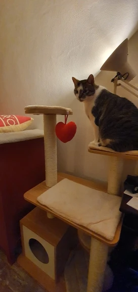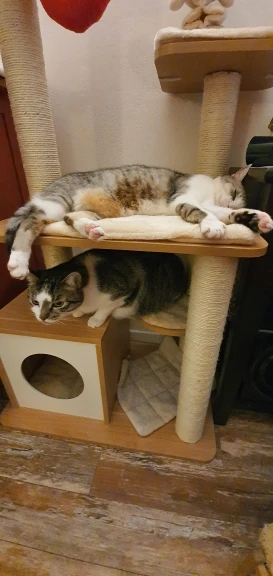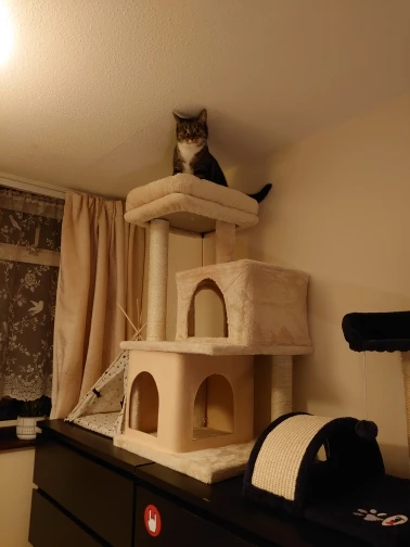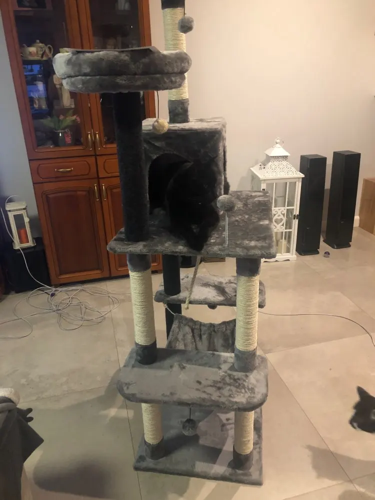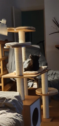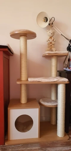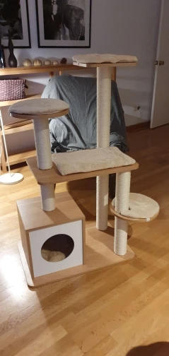 Очень милое кошачье дерево, всем моим мальчикам очень нравится. Единственная проблема-немного скользкая из-за деревянной поверхности. В противном случае, очень хорошо, выглядит хорошо в моей гостиной. Определенно рекомендую это кошачье дерево