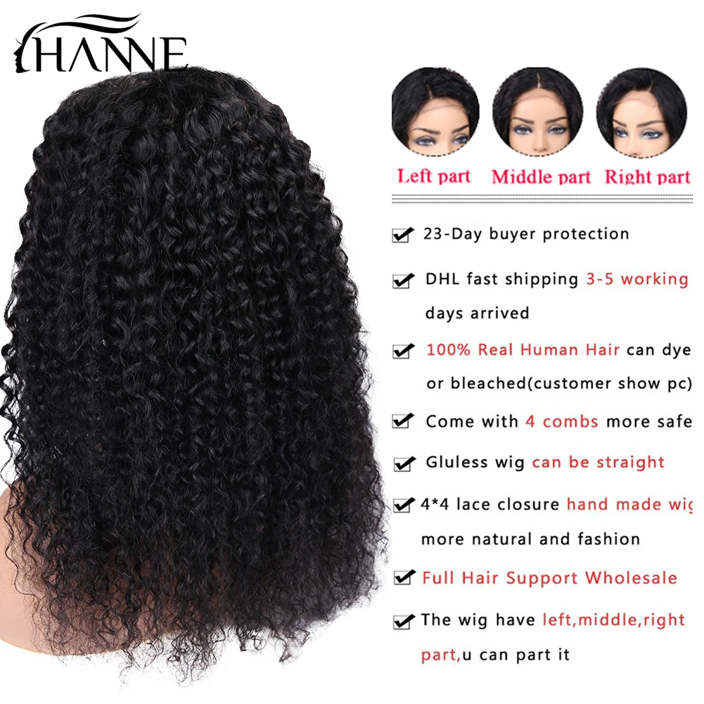 Бразильские кудрявые человеческие волосы HANNE Remy, парик на шнурке 4x4, парики с закрытием, 3 части, человеческие волосы без клея, плотность 150% для чернокожих женщин