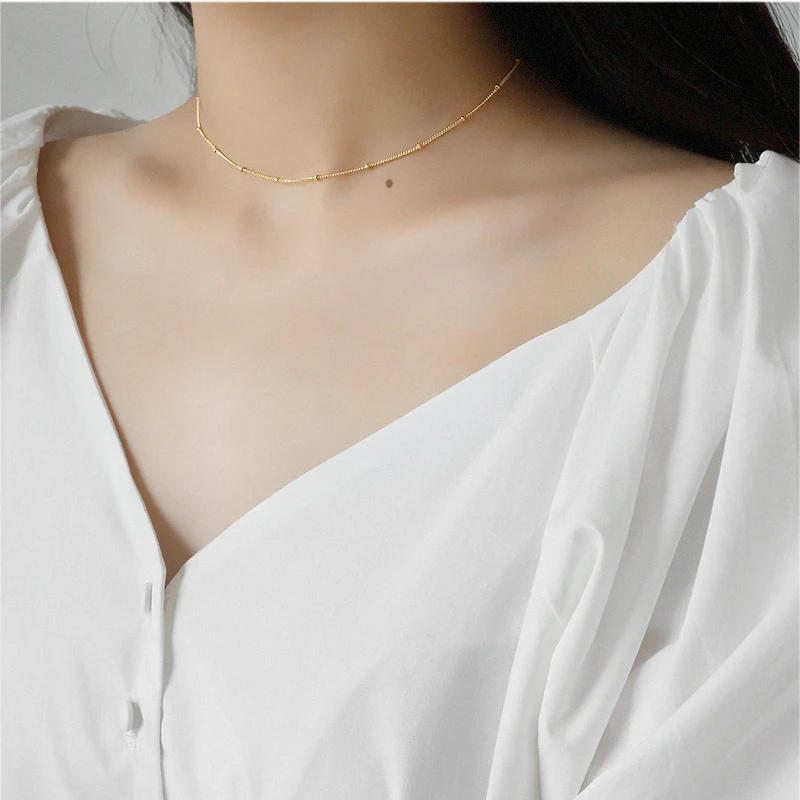 Женское колье-чокер из серебра 925 пробы, базовое ожерелье с золотистой цепочкой, подарочное Ювелирное Украшение из серебра 925 пробы