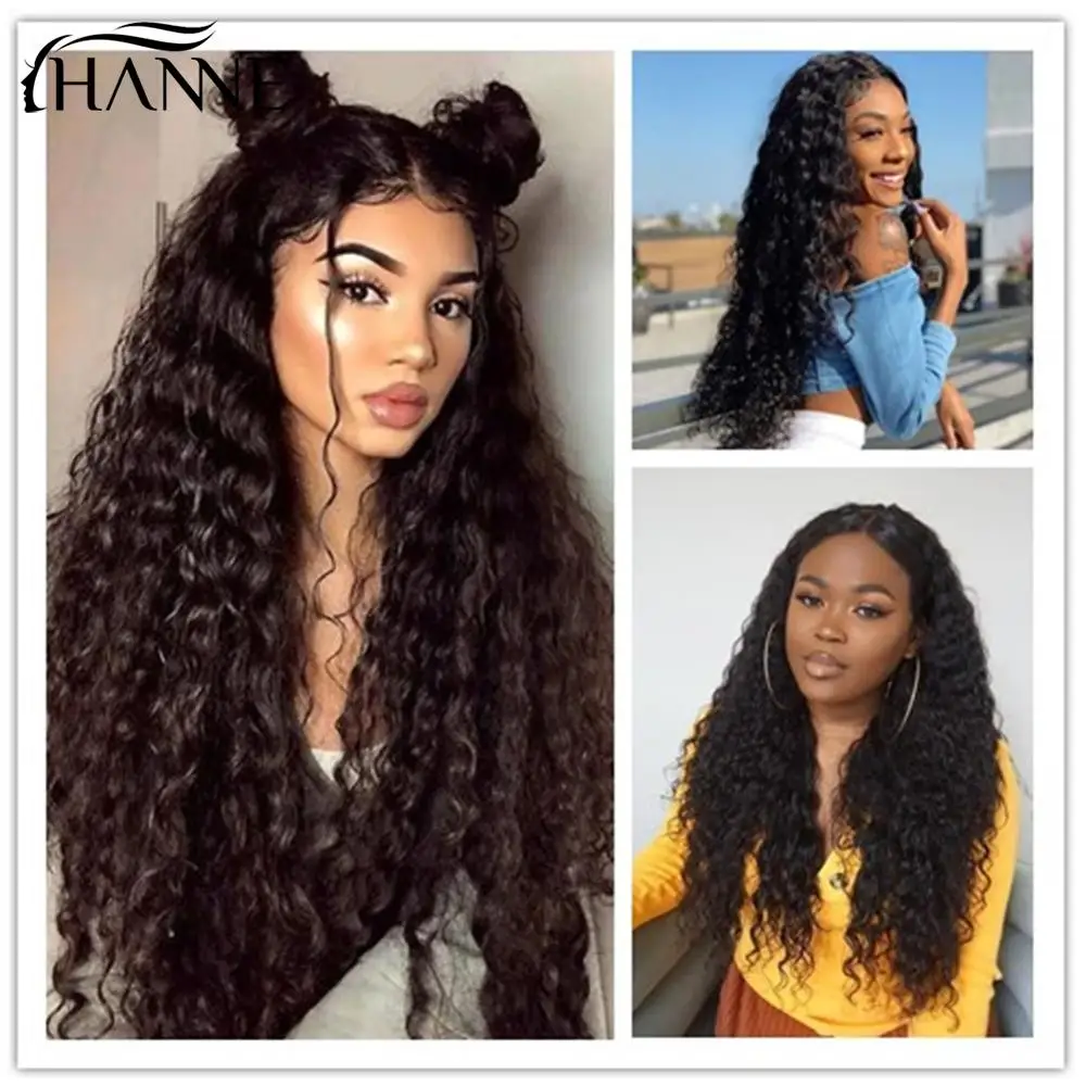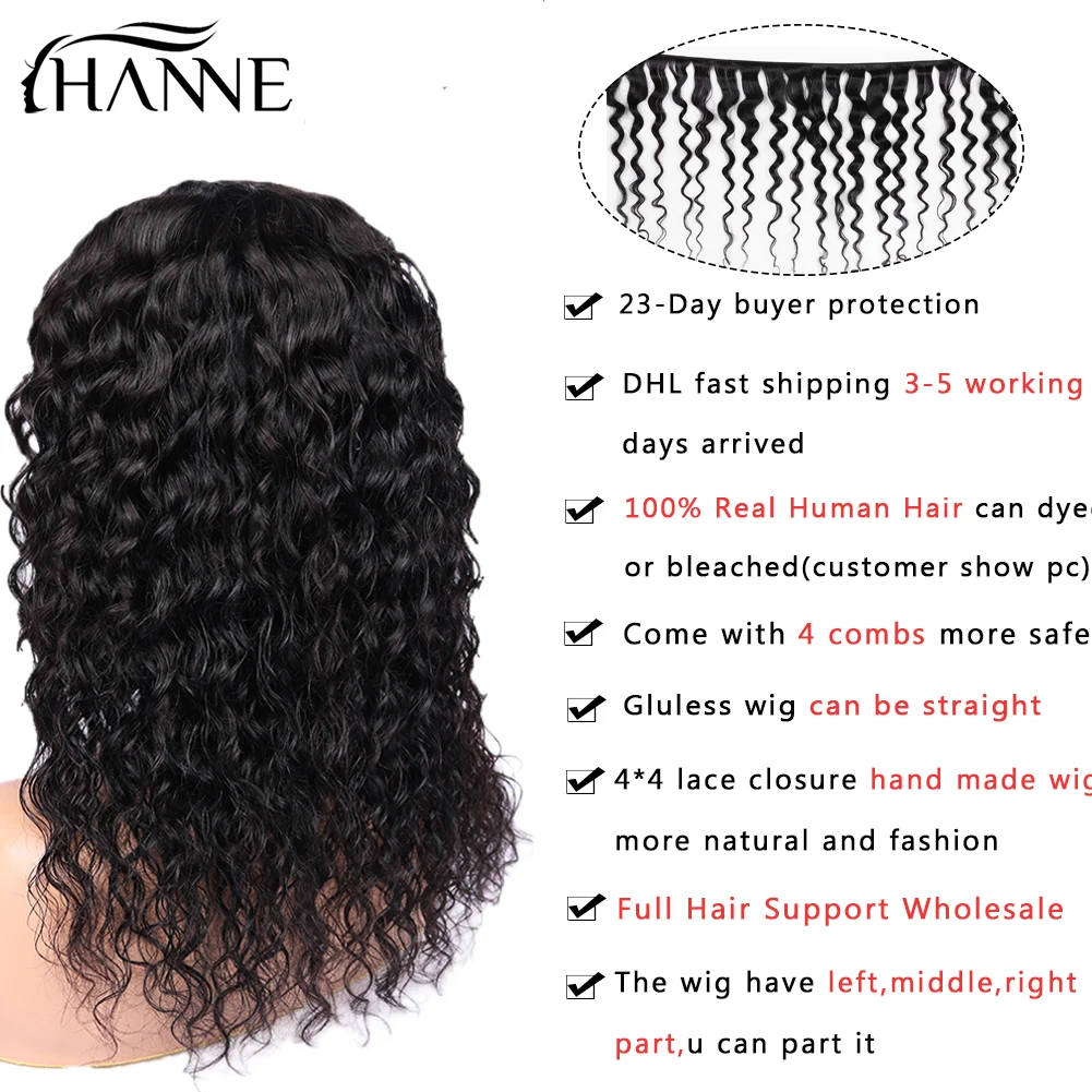 Волосы HANNE, 4*4, закрытие на шнурке, LMR, 3 части, парики, бразильские, Remy, бесклеевые, водные волны, волосы на шнурке спереди, парик для чернокожих женщин
