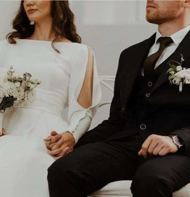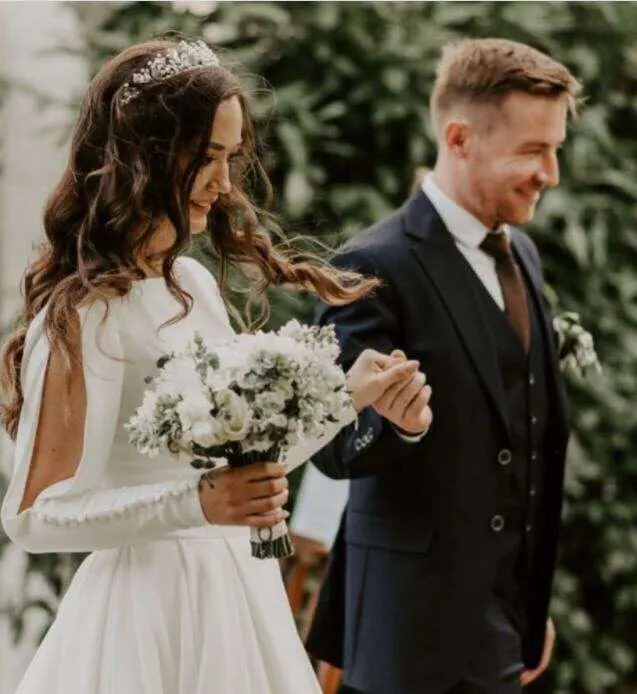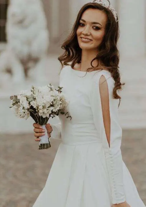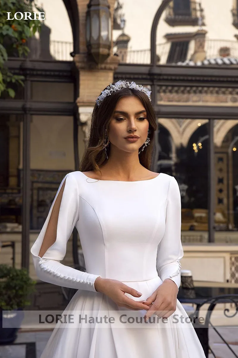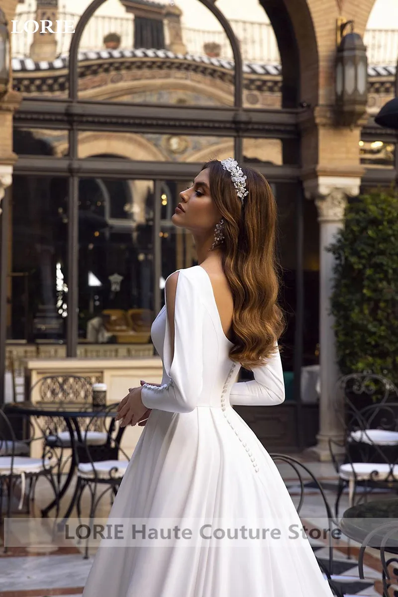 Женское атласное свадебное платье LORIE, ТРАПЕЦИЕВИДНОЕ кружевное платье с длинным рукавом и открытой спиной, на пуговицах, 2019