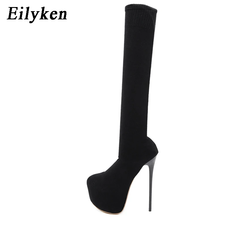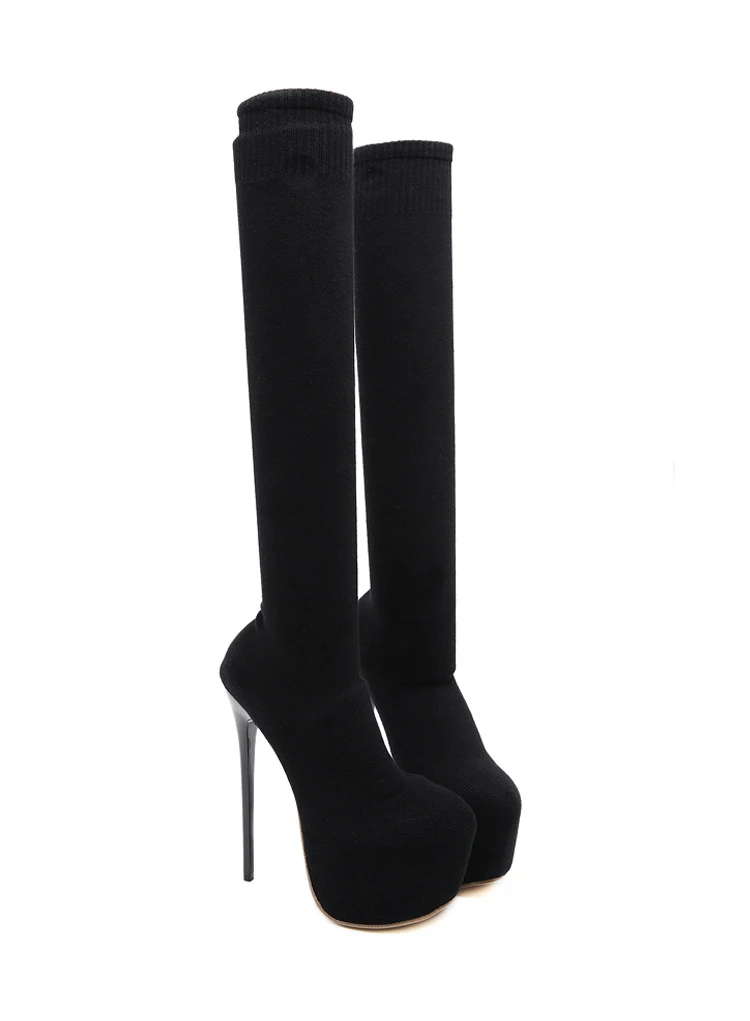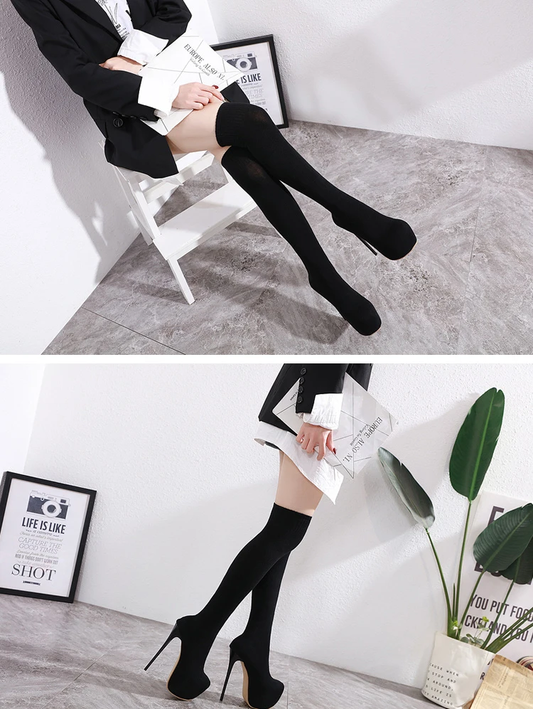 Сапоги женские зимние выше колена, на платформе, с каблуком 17 см