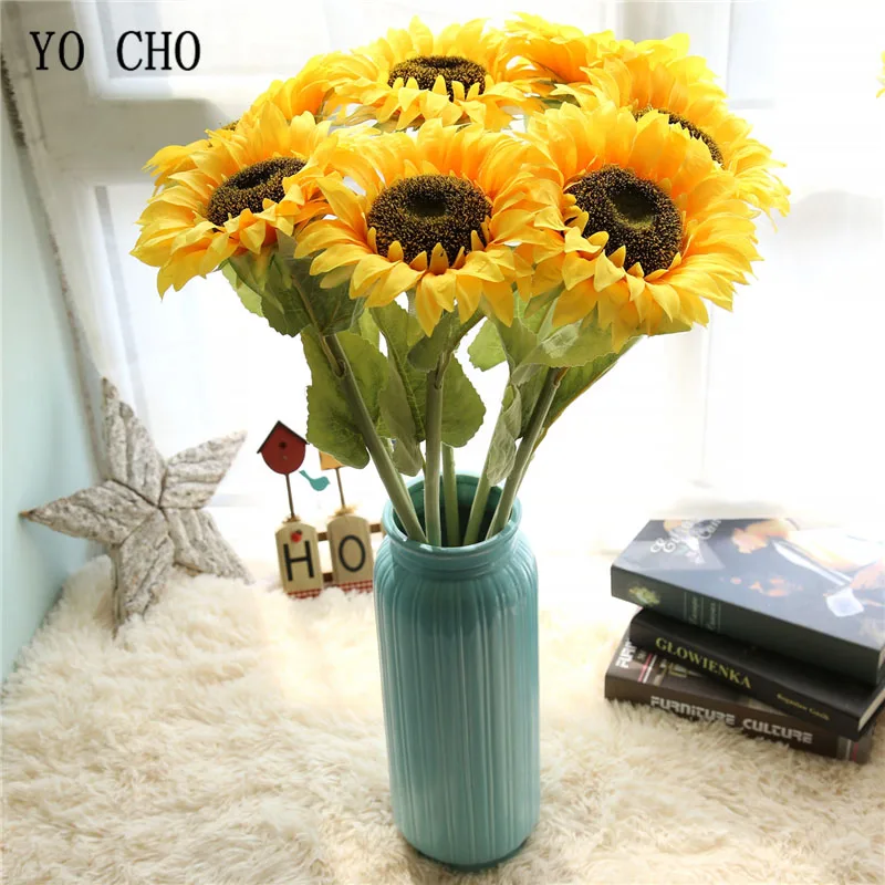 Йо Чо желтый искусственный подсолнух, ветка Подсолнух для свадебного стола, вечерние, Новогодние декоративные искусственные цветы