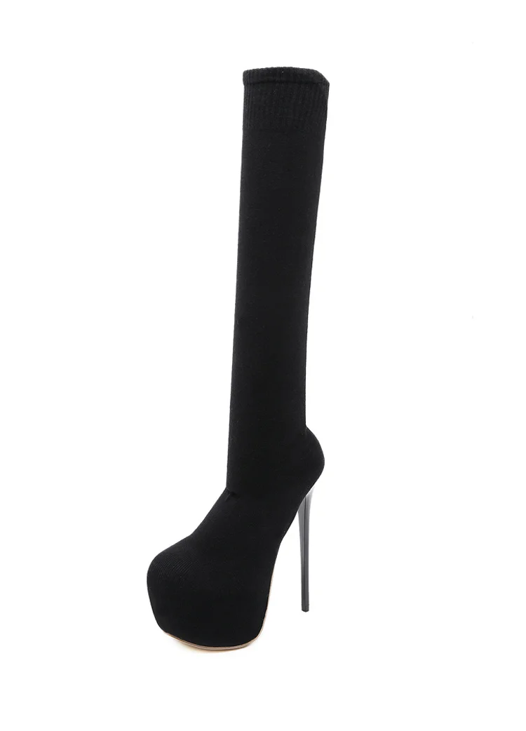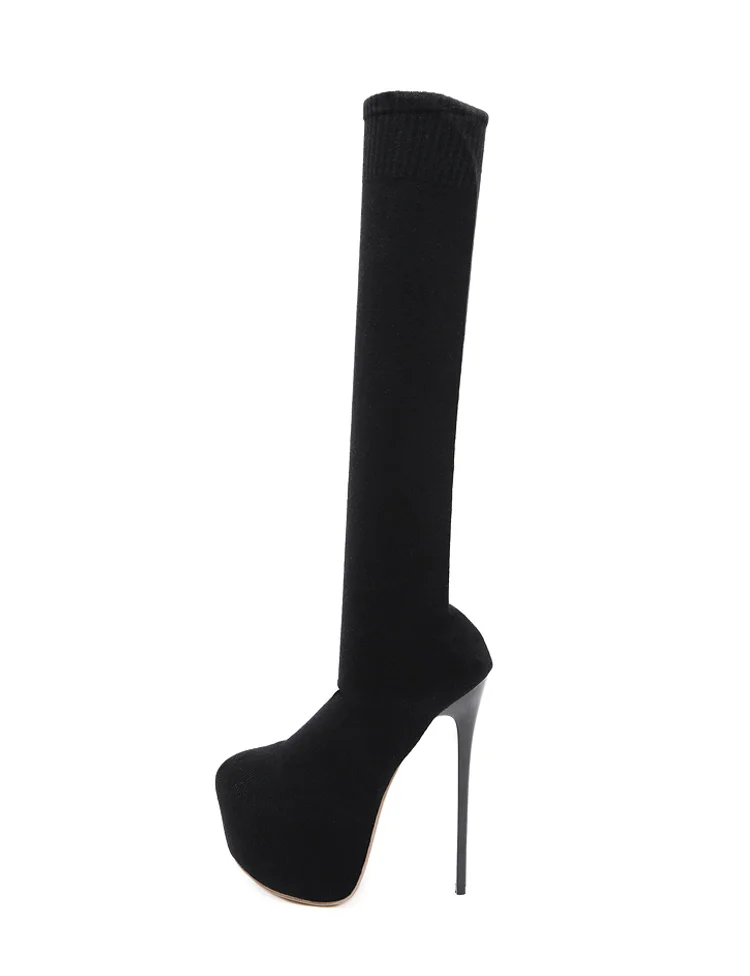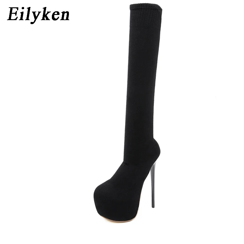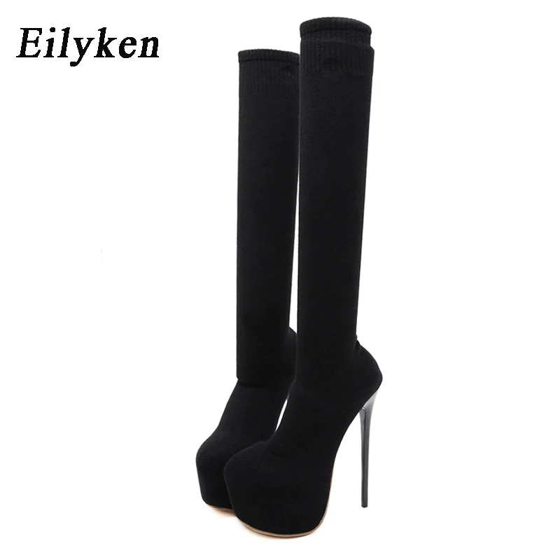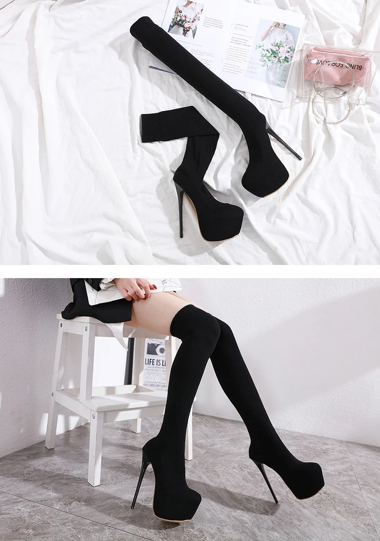 Eilykenмодные ботфорты из эластичной ткани на платформе с круглым носком на шпильке; Женские пикантные Клубные высокие сапоги до бедра на высоком каблуке