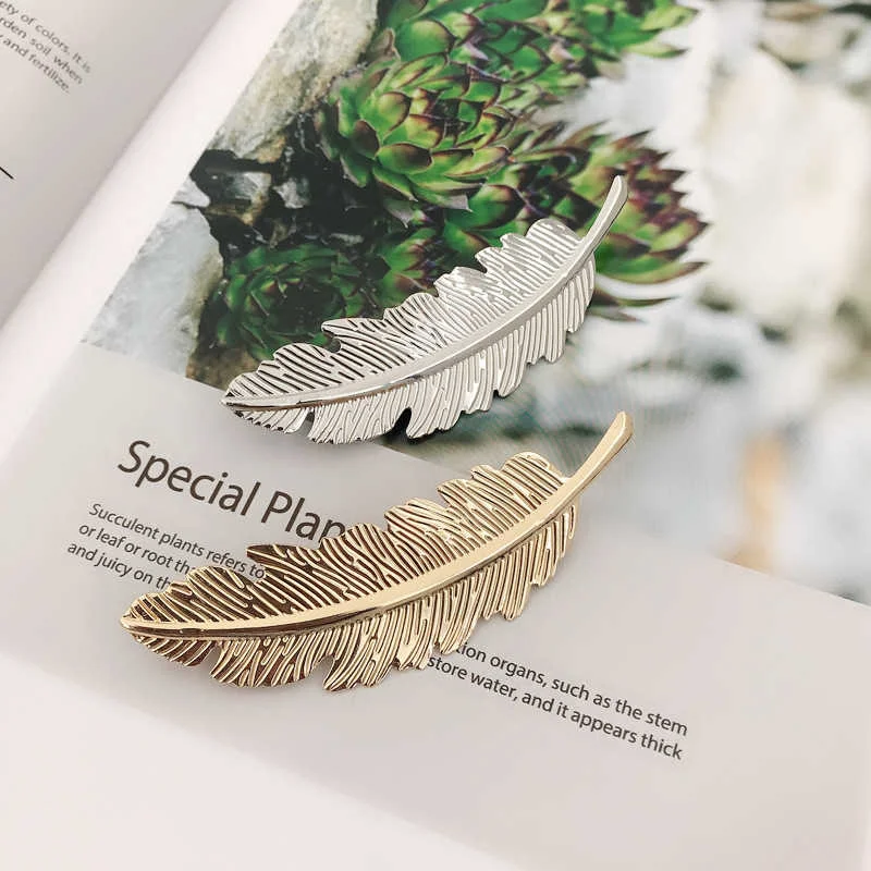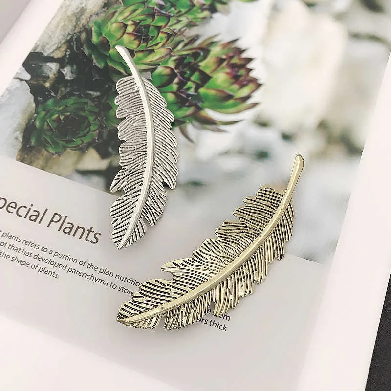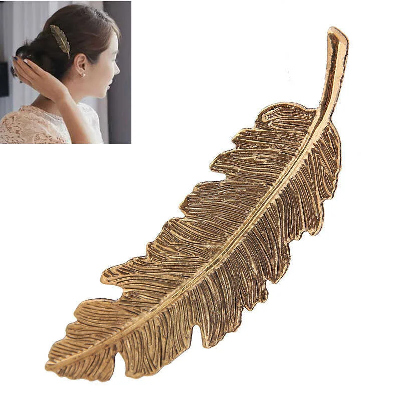 Женская заколка для волос в античном стиле, Винтажная заколка-пряжка для волос с металлическими перьями, заколка для волос в форме листа или конского хвоста, аксессуары для волос на весну