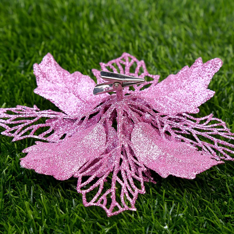 16 см блестящие цветы для рождественской елки, полый искусственный цветок для свадебной вечеринки, Рождественское украшение, цветное украшение